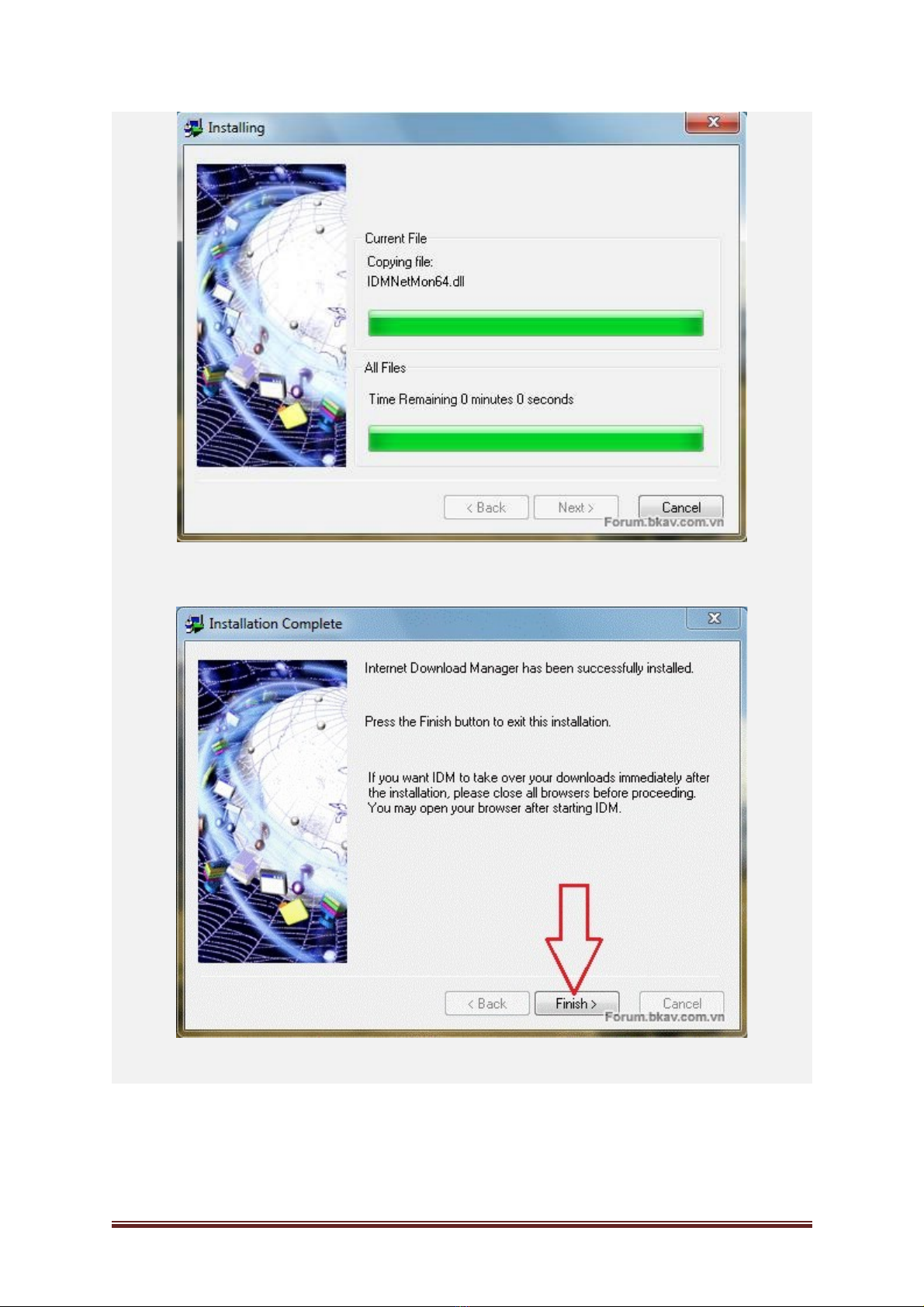 Bấm Finish để kết thúc