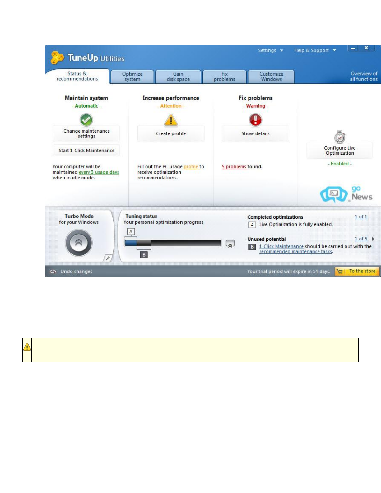 Giao diện TuneUp Utilities 2011 được thiết kế lại trông bắt mắt và dễ sử dụng hơn. Thẻ Status &