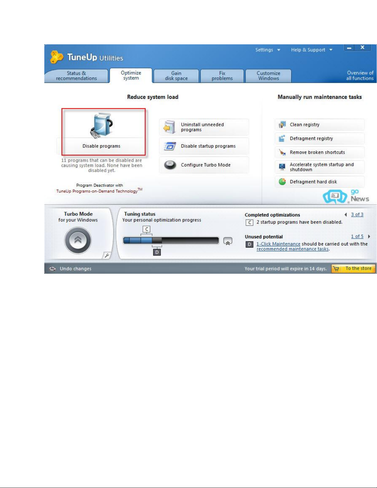 Tính năng mới “cáu” TuneUp Program Deactivator có trong TuneUp Utilities 2011 giúp bạn tắt triệt để