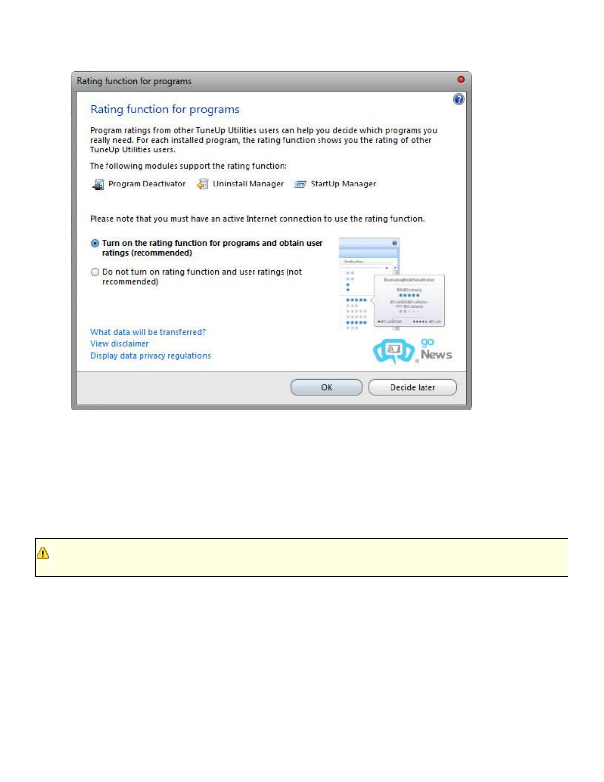 Hộp thoại Rating function for programs hiện ra khuyến cáo bạn nên bật tính năng đánh giá phần mềm