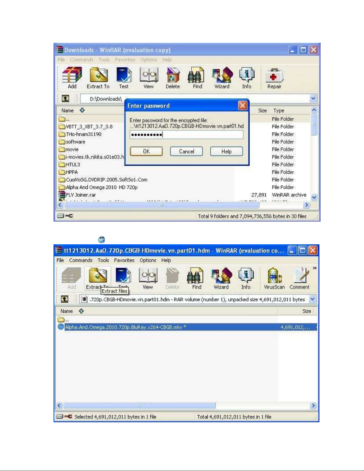Khi các bạn tải phim (Full HD) có phần mở rộng là .hdm thì dùng winrar extract