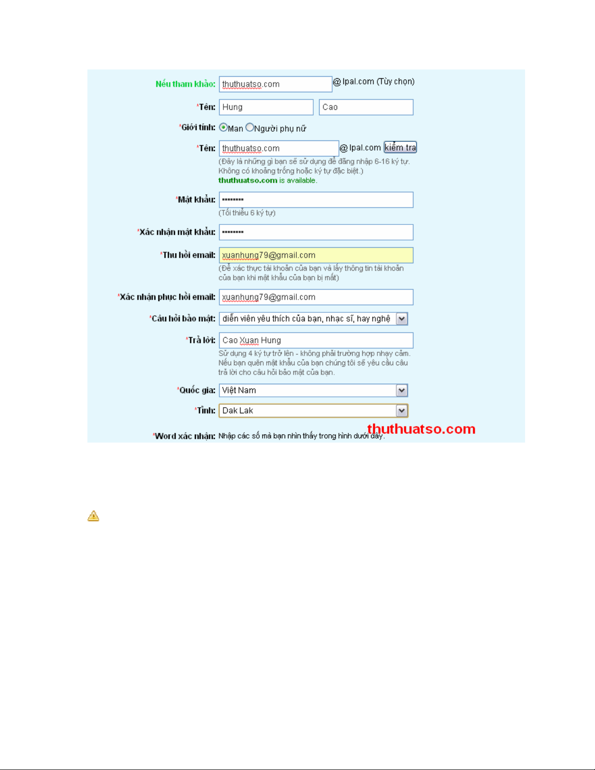 Sau khi điền đầy đủ thông tin các bạn chọn ” Tạo tài khoản