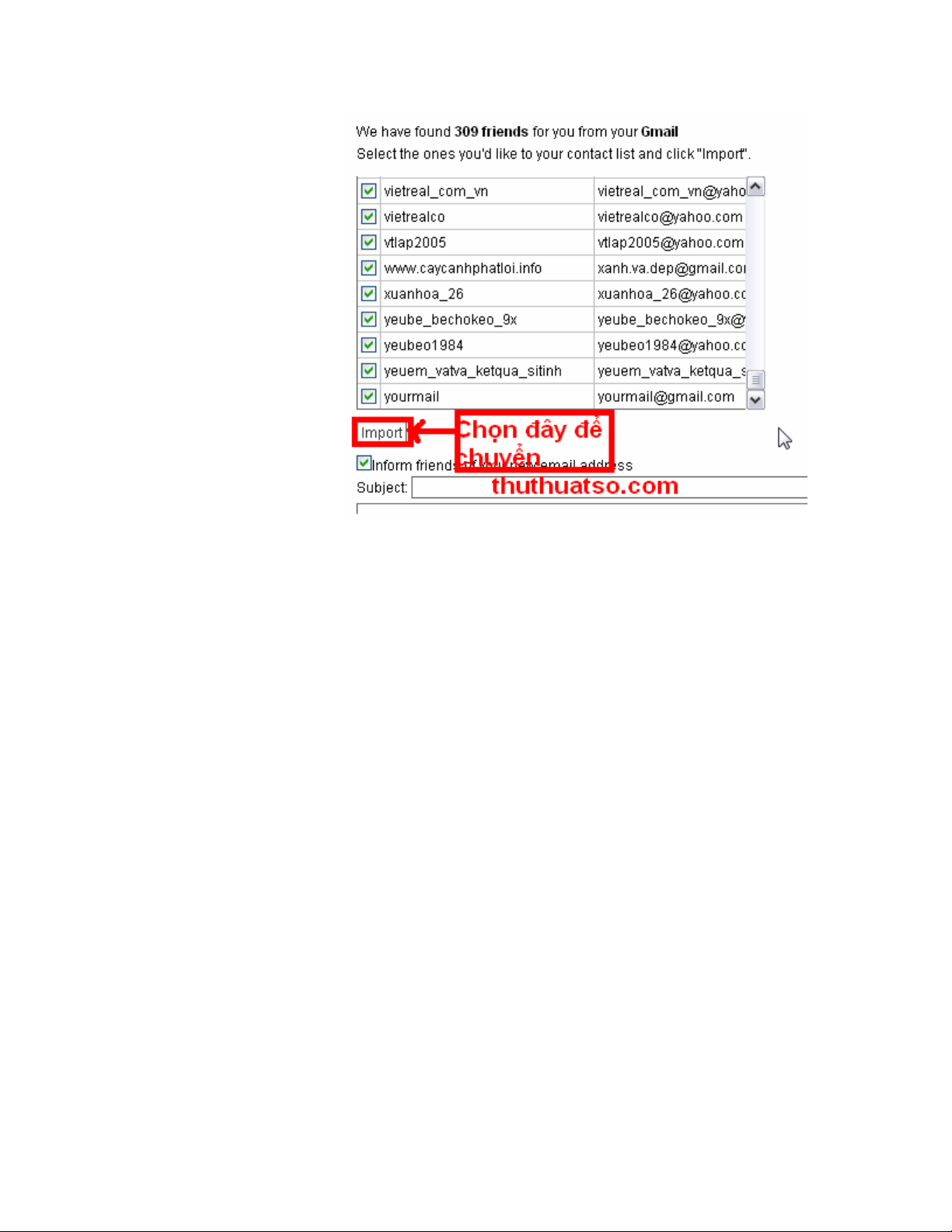 email và bạn lựa chọn email nào bạn muốn chuyển thì tick