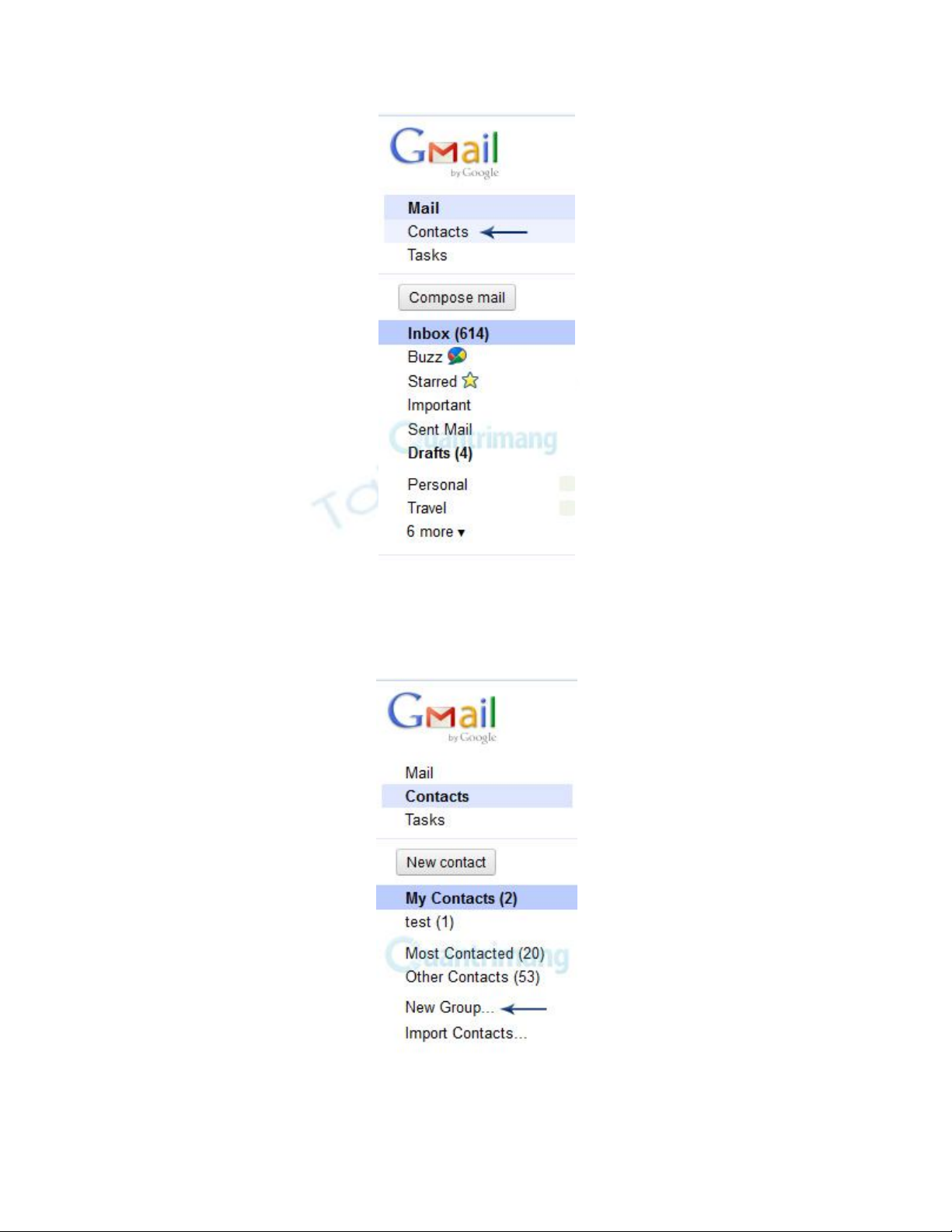Bên dưới mục My contacts các bạn nhấn New Group: