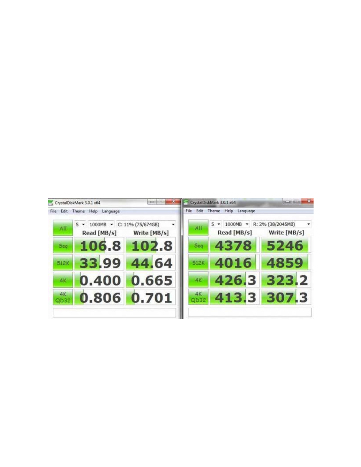trên ta có thể thấy tốc độ ghi đọc khác nhau giữa một ổ cứng 7200 rpm (trái) và