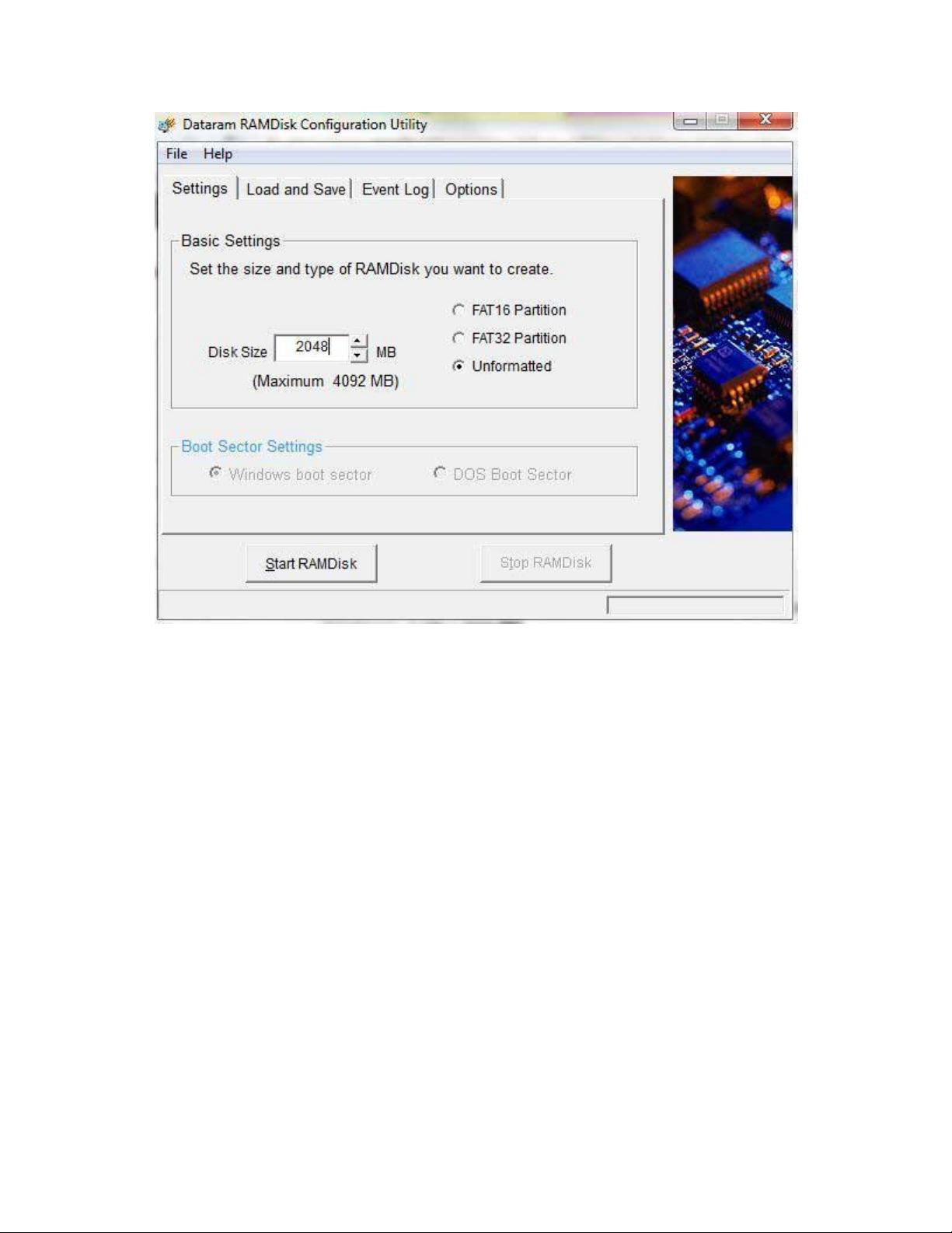Sau khi chọn tùy chọn lưu và tải, kích vào Start RAMDisk và cài đặt ổ Datagram.