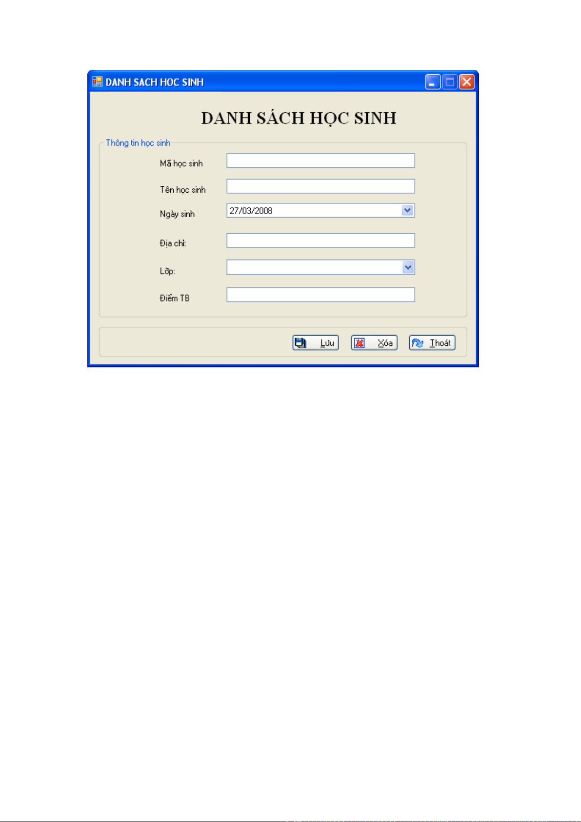 Thiết kế Form “Nhập thông tin học sinh” như màn hình sau: