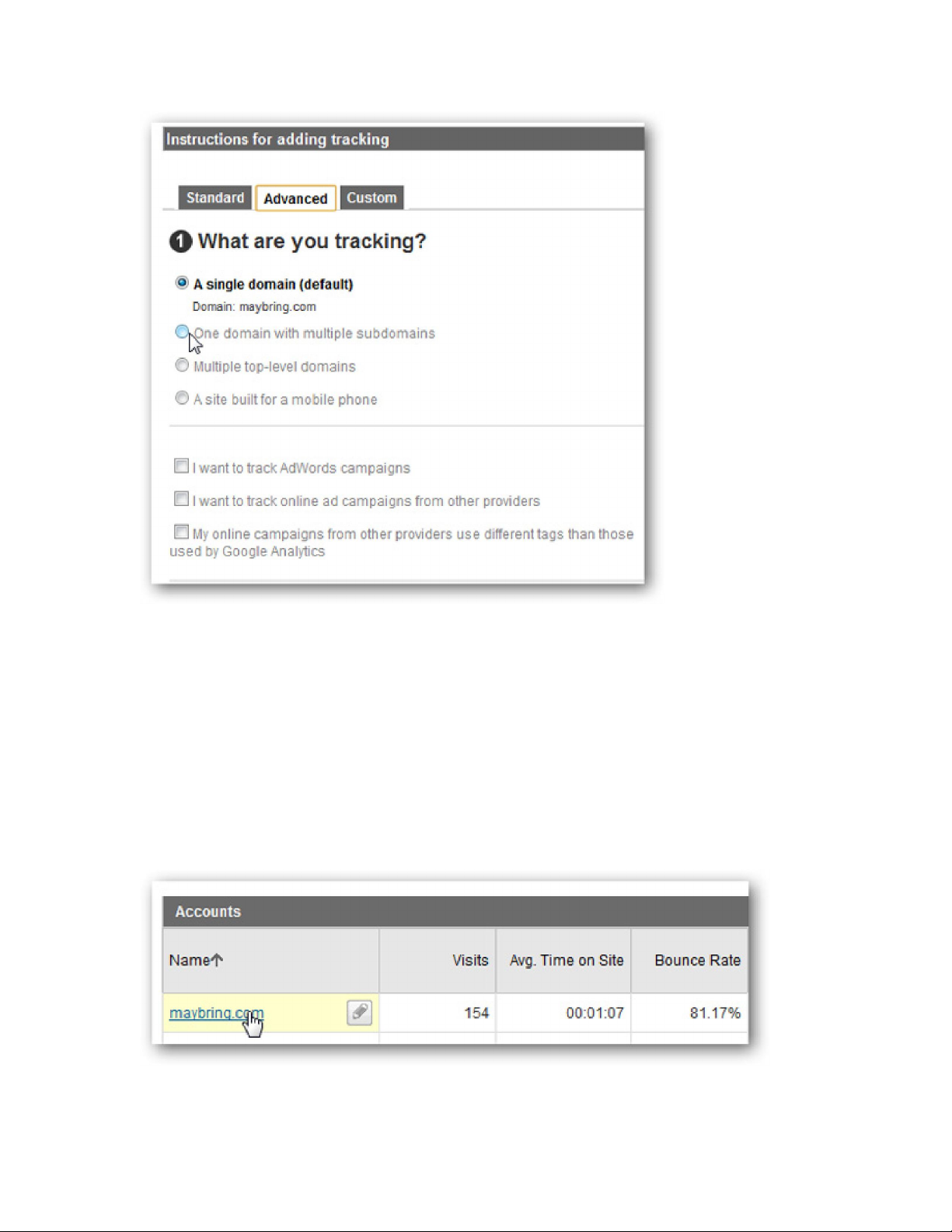 subdomain, hoặc mobile website, chọn thẻ Advanced: