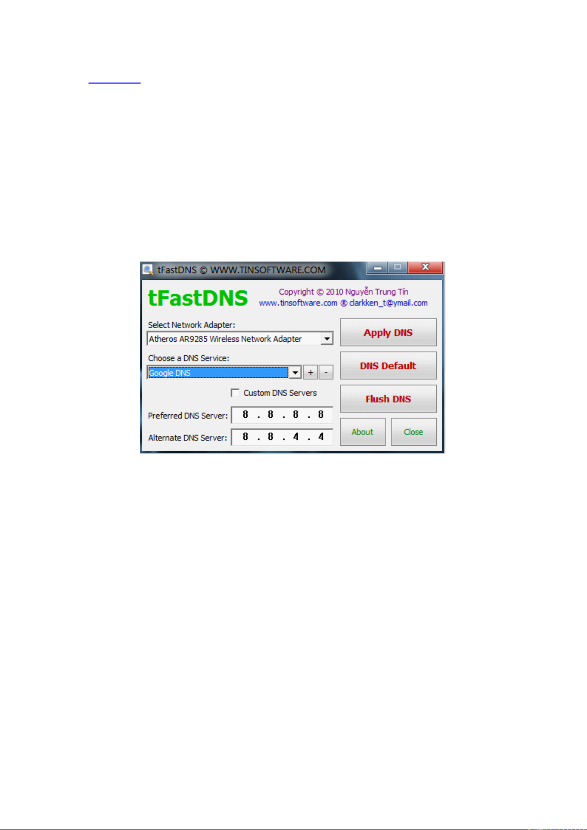 Để thay đổi, chạy file tFastDNS, trên giao diện chọn card mạng có kết nối Internet và