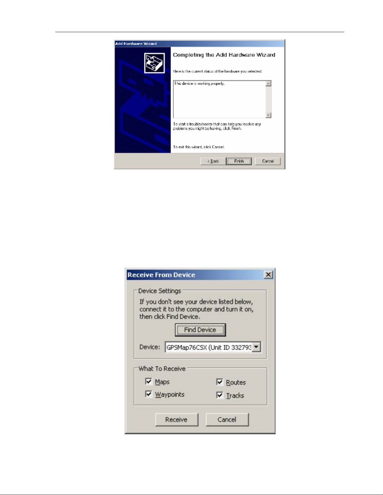 o Choïn Finish, keát thuùc vieäc caøi ñaët maùy tính hieåu thieát bò GPS Garmin.