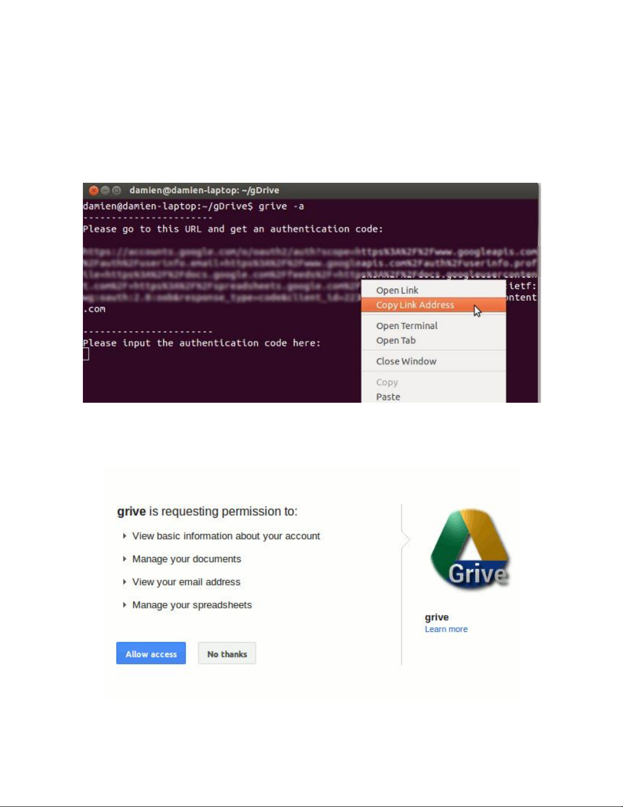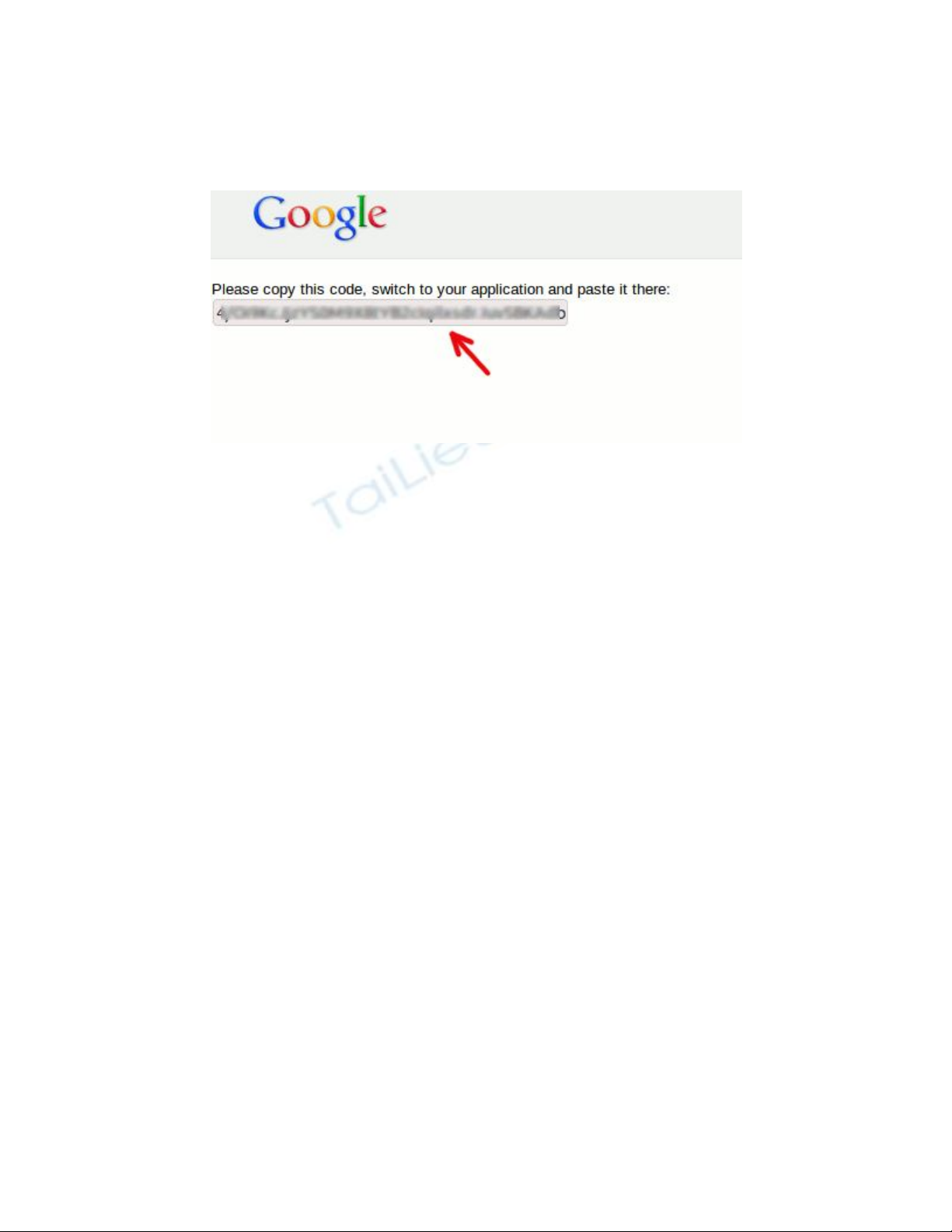 Sau khi được phép truy cập Grive, một mã xác thực hiện ra, ta cần lưu lại đoạn mã này để