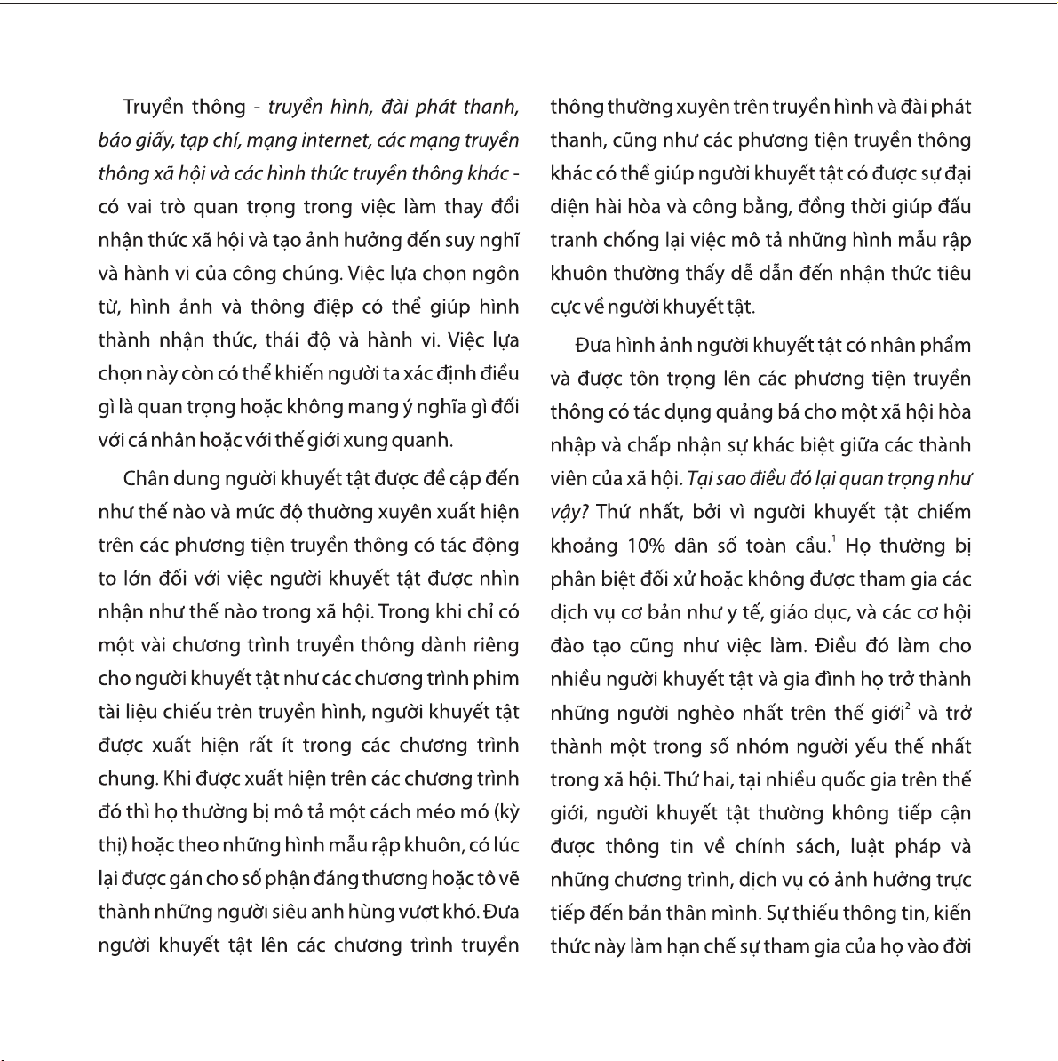 Tài liệu dành cho những người làm công tác biên tập, phóng viên, phát thanh viên, đạo diễn, những người làm chương trình và người dẫn chương trình, các nhà biên tập của các trang web và các sản phẩm truyền thông đa phương tiện đối với công tác truyền thông người khuyết tật.