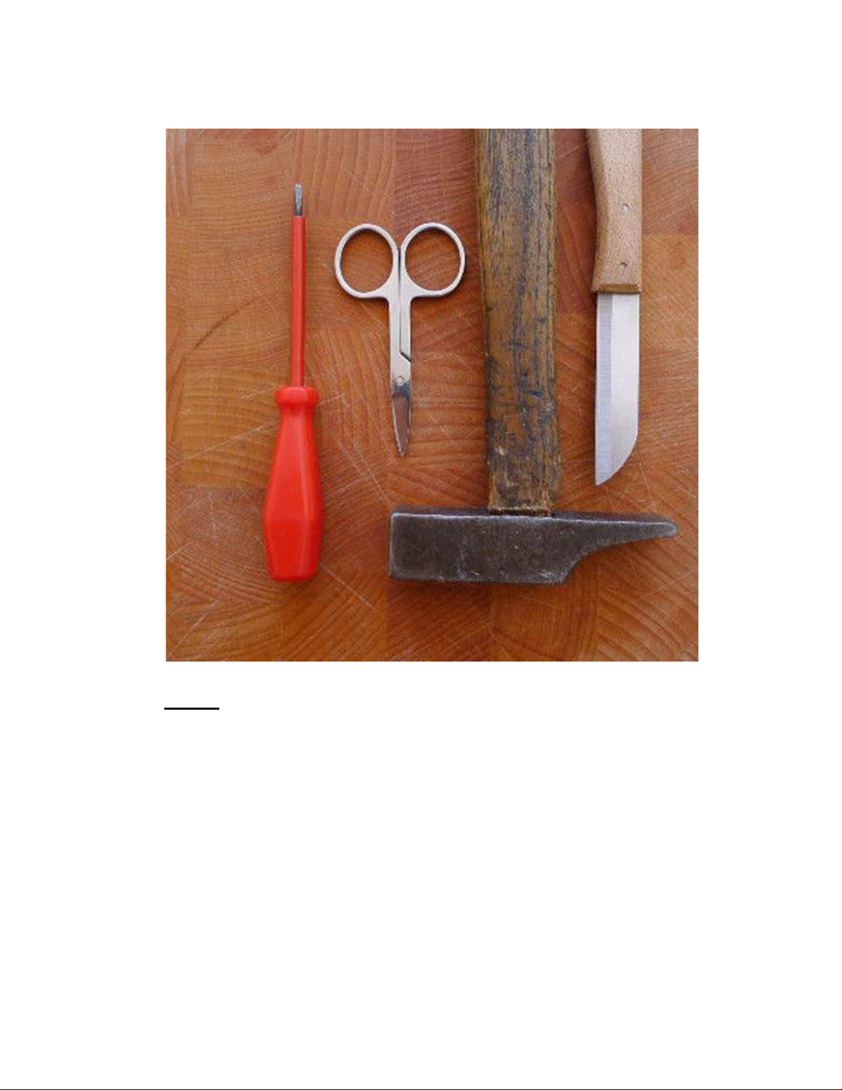 Dao hoặc kéo, búa hoặc máy khoan nhỏ.