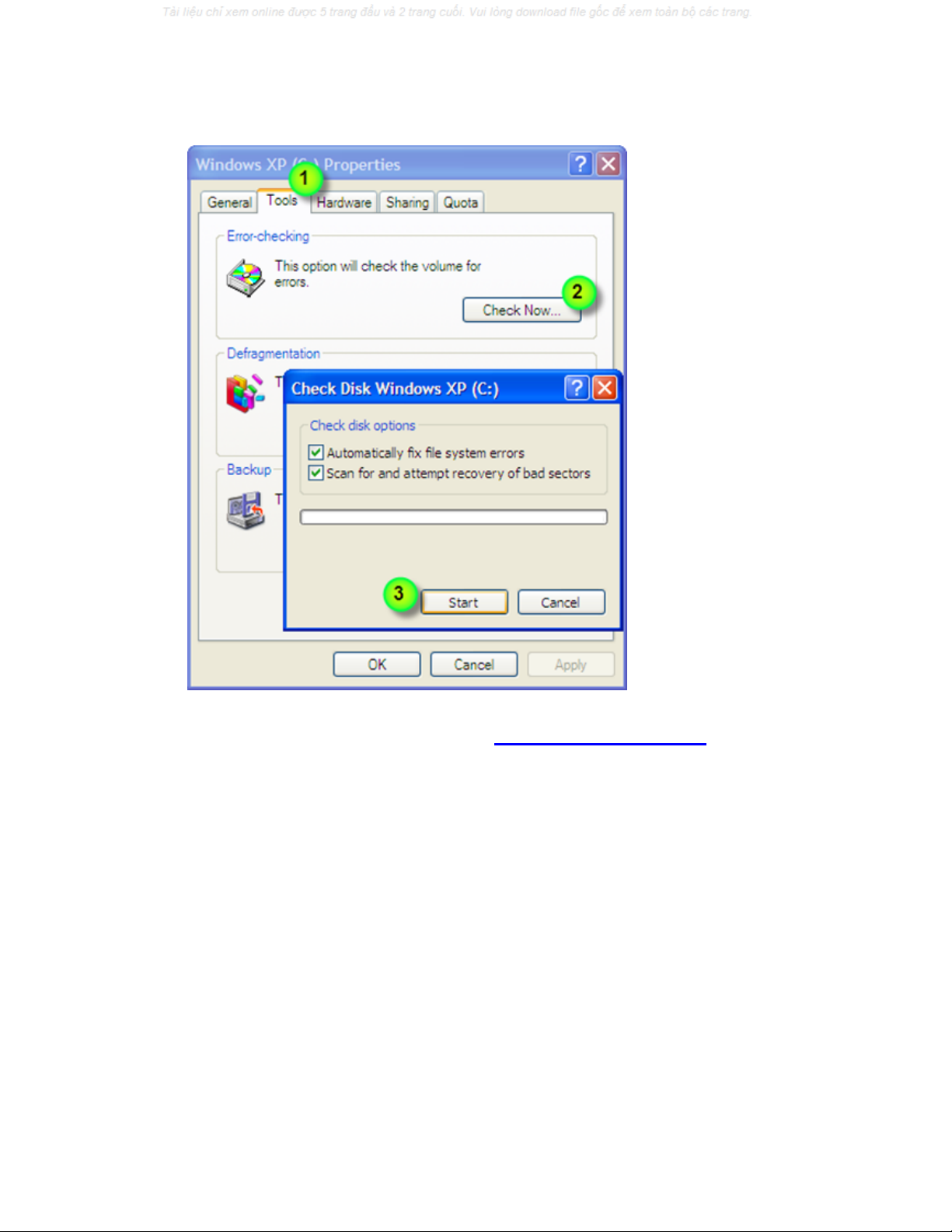system errors và Scan for and attempt recovery of bad sectors. Cuối cùng
