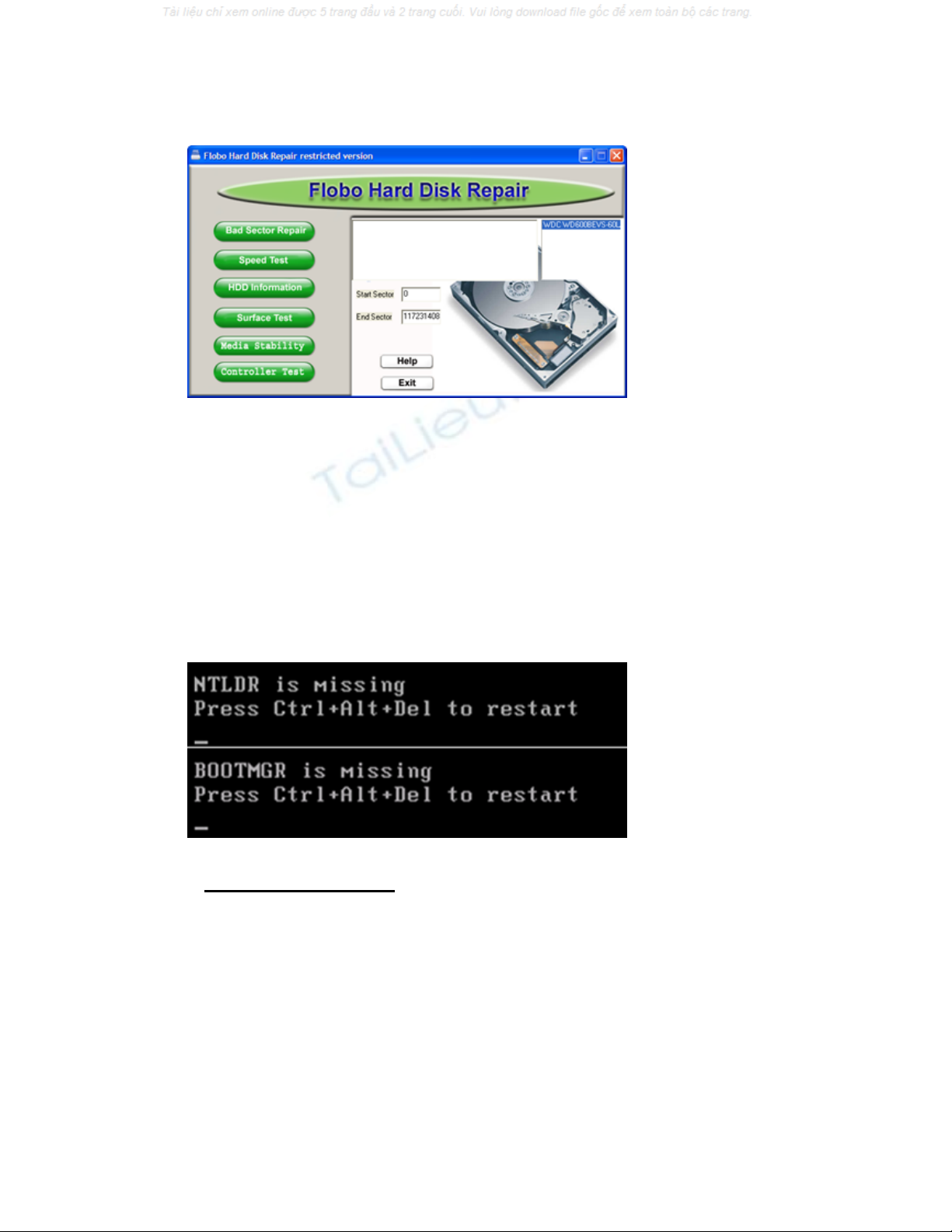 is missing (với Windows Vista/7), đồng thời màn hình boot sẽ dừng lại ở