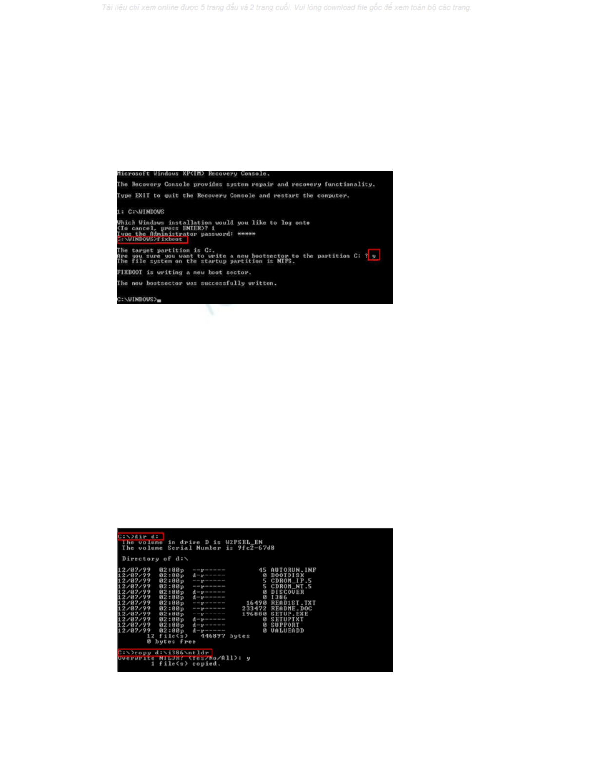 khẩu Administrator và gõ lệnh fixboot. Lệnh này sẽ chép lại các file cần thiết