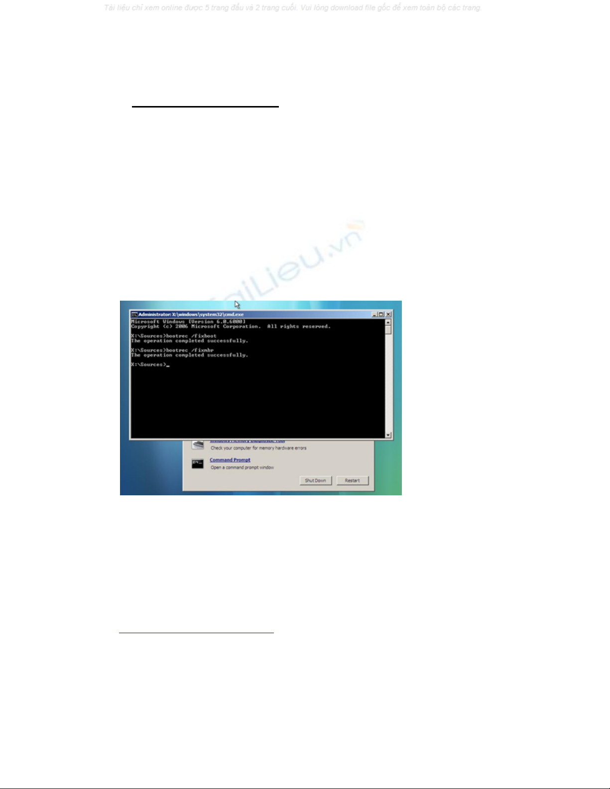 vào ổ cứng. Sau đó, kết thúc bằng lệnh BOOTCFG /rebuild và khởi động lại