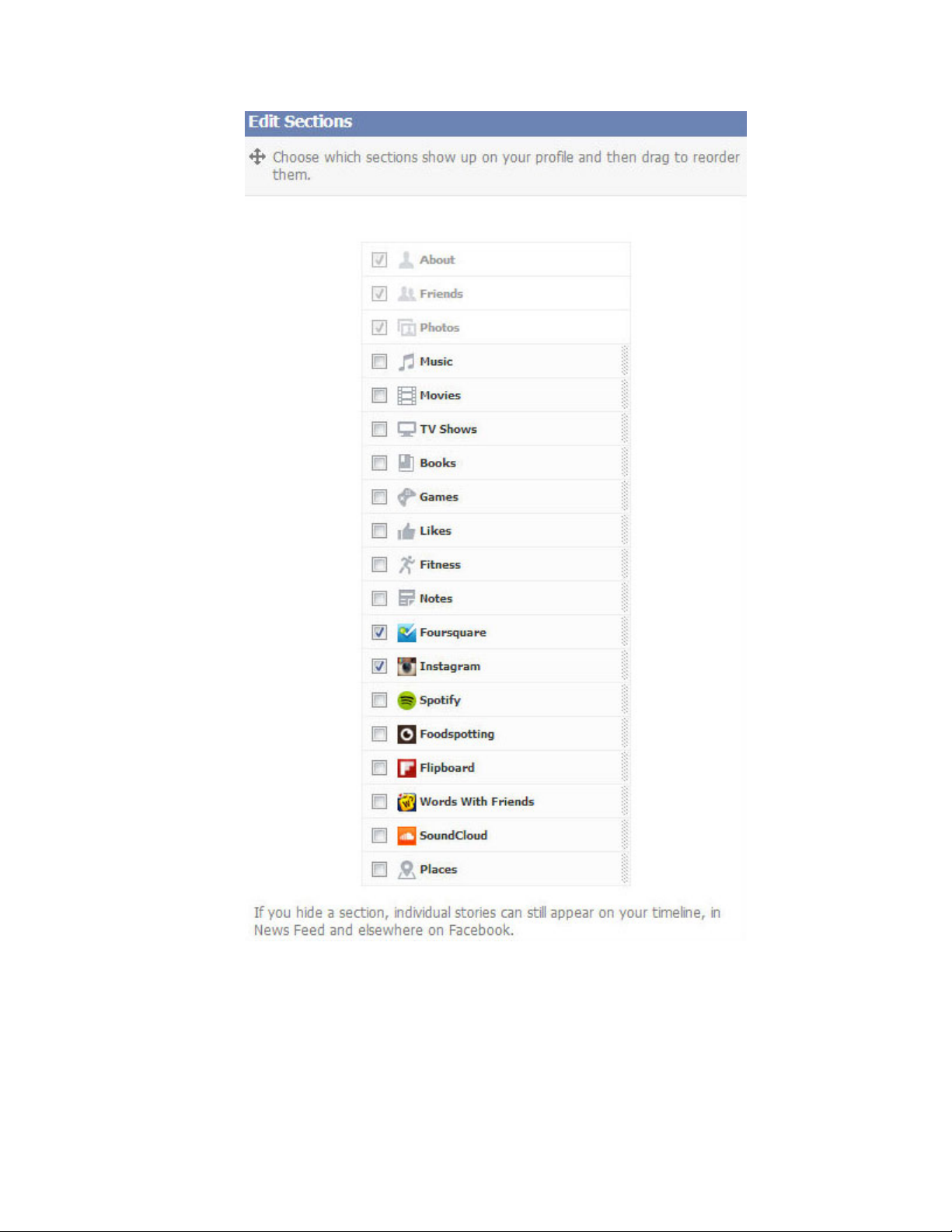 mỗi mục để cho phép hiển thị nội dung của mục trên Timeline, ho