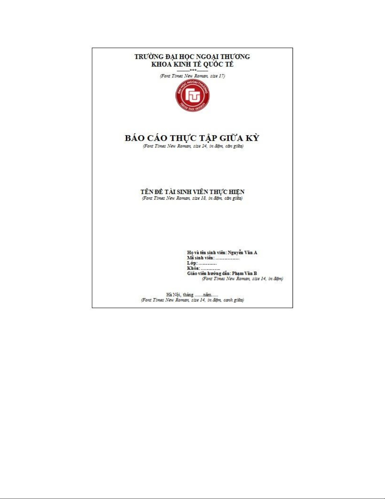 1. Hình thức của Báo cáo thực tập (BCTT):