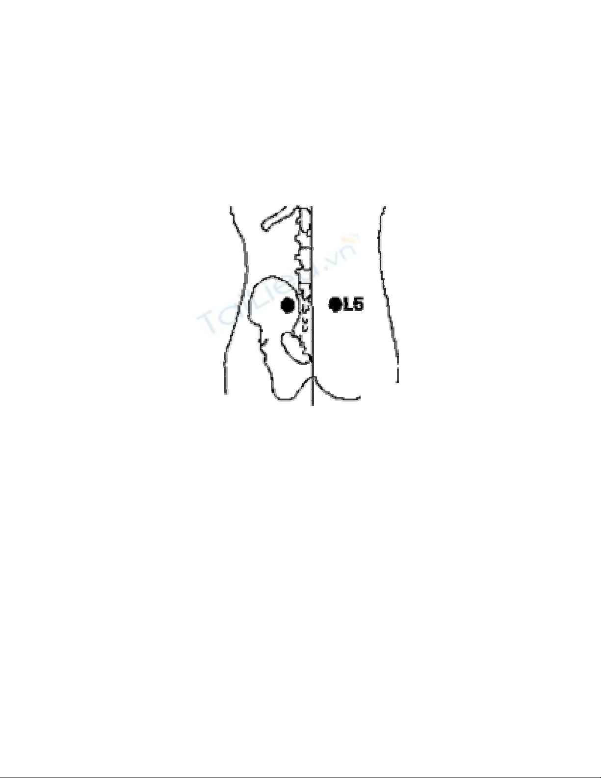 Dưới đốt sống thắt lưng 5, đo ngang ra 1, 5 thốn.