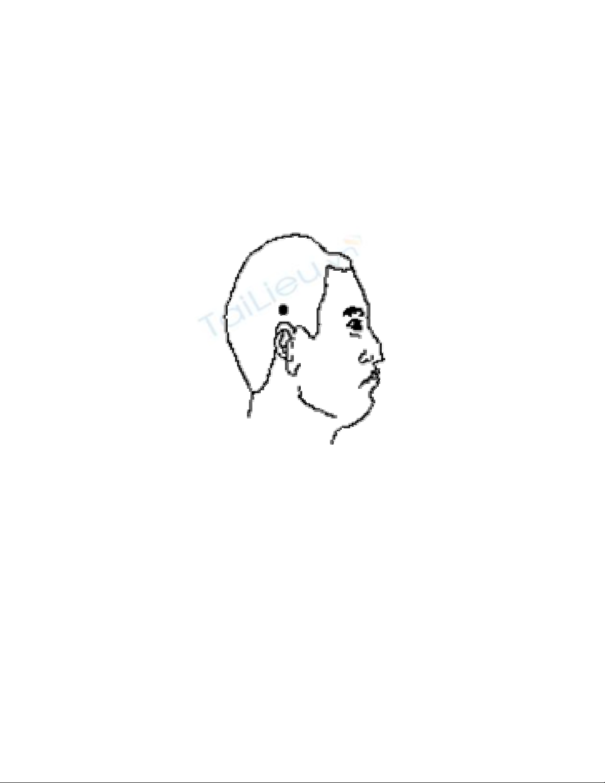 Gấp vành tai, huyệt ở ngay trên đỉnh vành tai, trong chân tóc 1, 5 thốn.