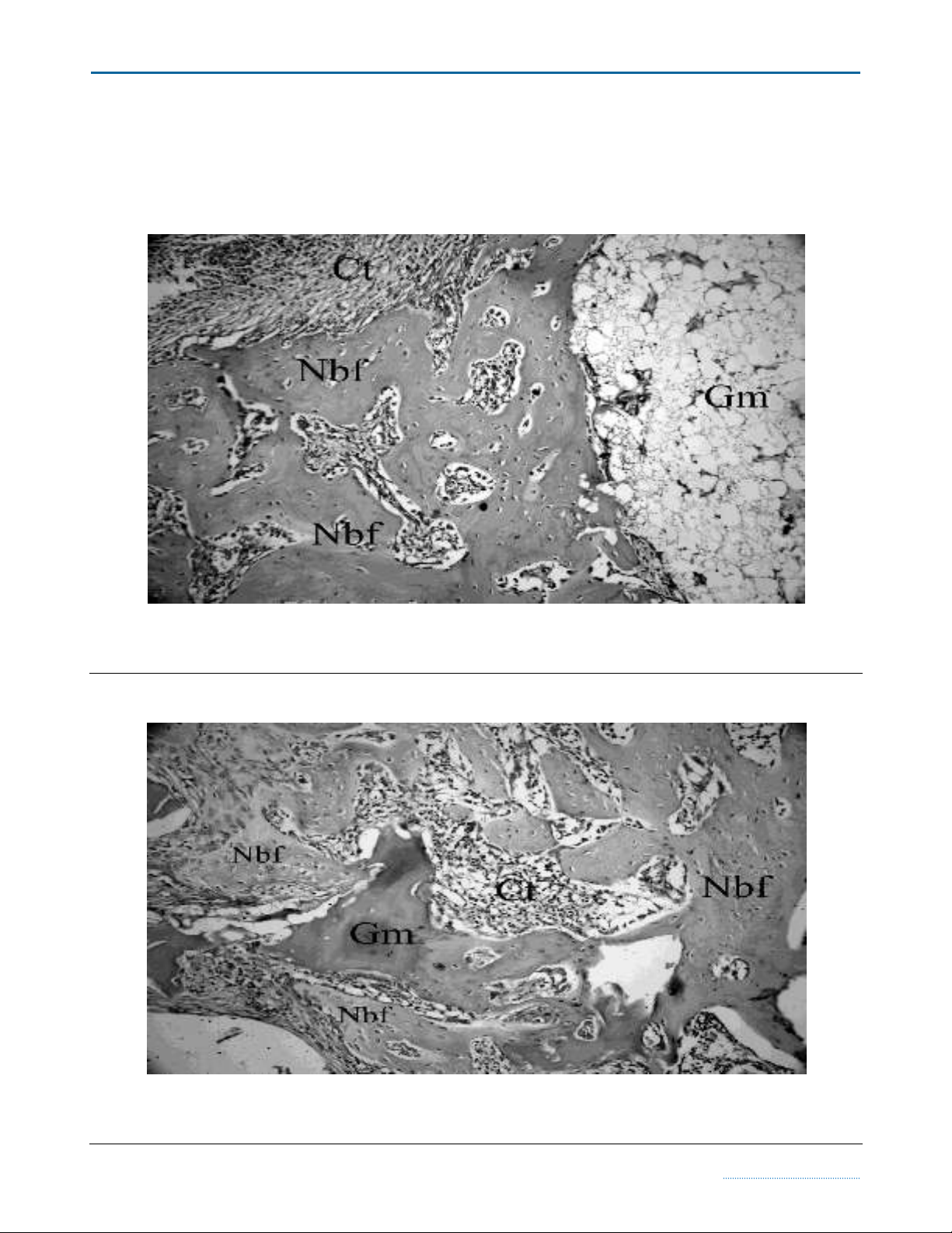 (H&E×200) (Nbf; New bone formation, Gm; Graft material, Ct; Connective tissue).