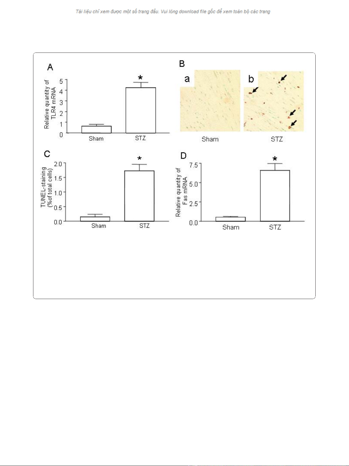 Figure 1 Up-regulation of TLR4 and increased apoptosis in the hearts of STZ mice.(A) TLR4 expression in the hearts of STZ mice. Injection