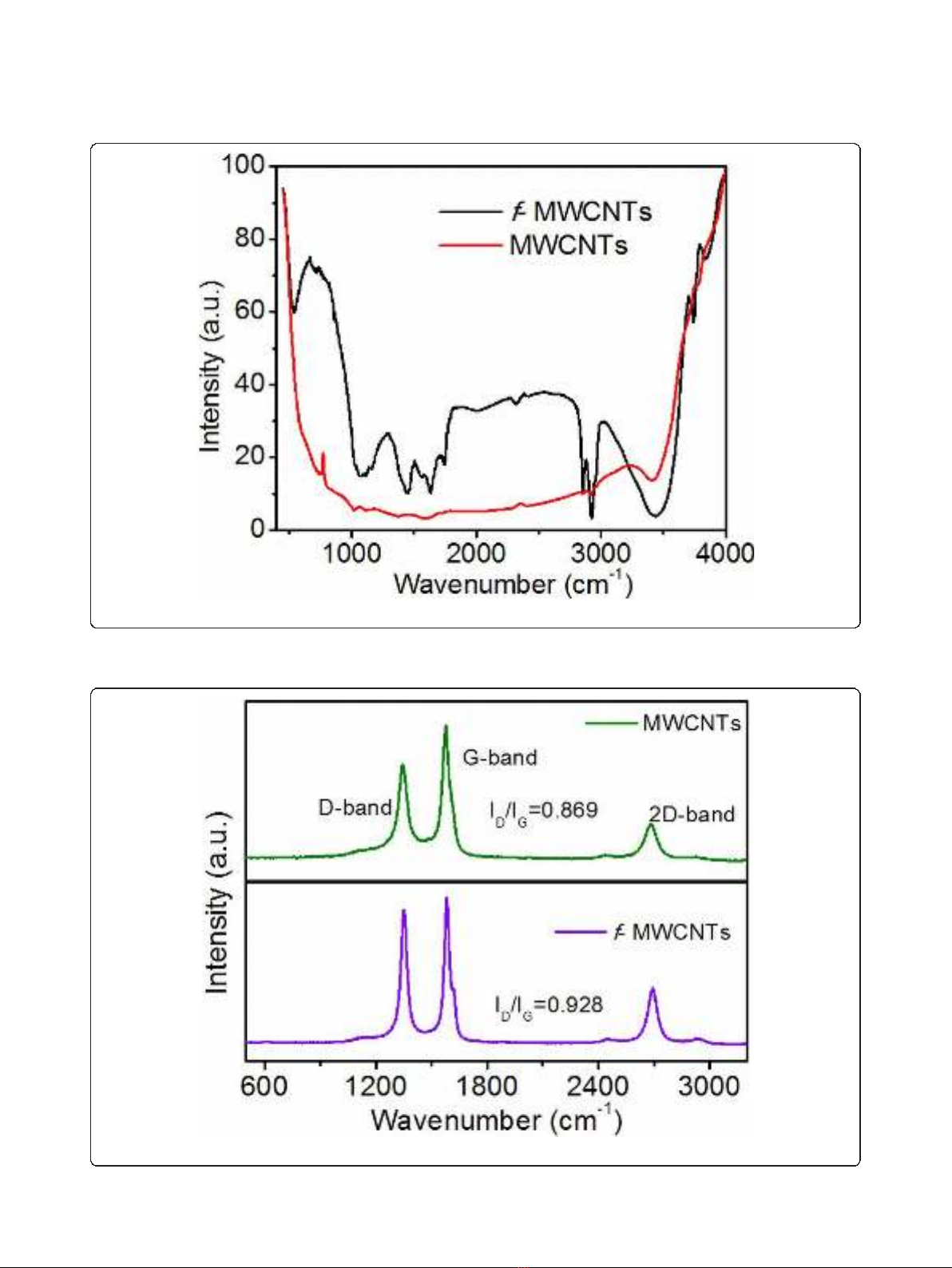 Figure 4 Raman spectra of purified and functionalized MWCNTs.