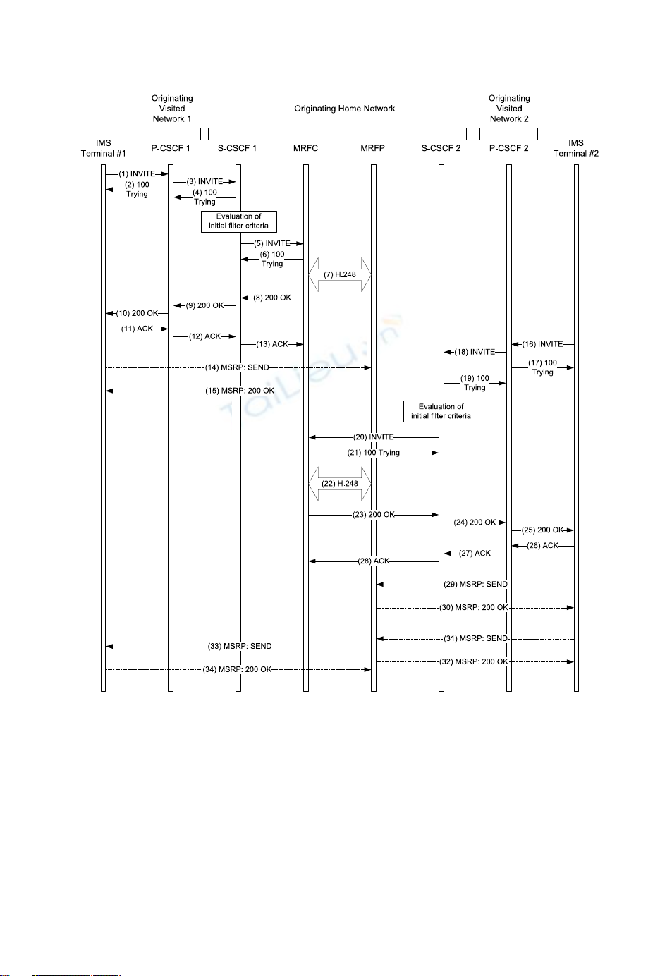 and S-CSCF. Their S-CSCF forwards the INVITE request (5) to the MRFC. The MRFC,