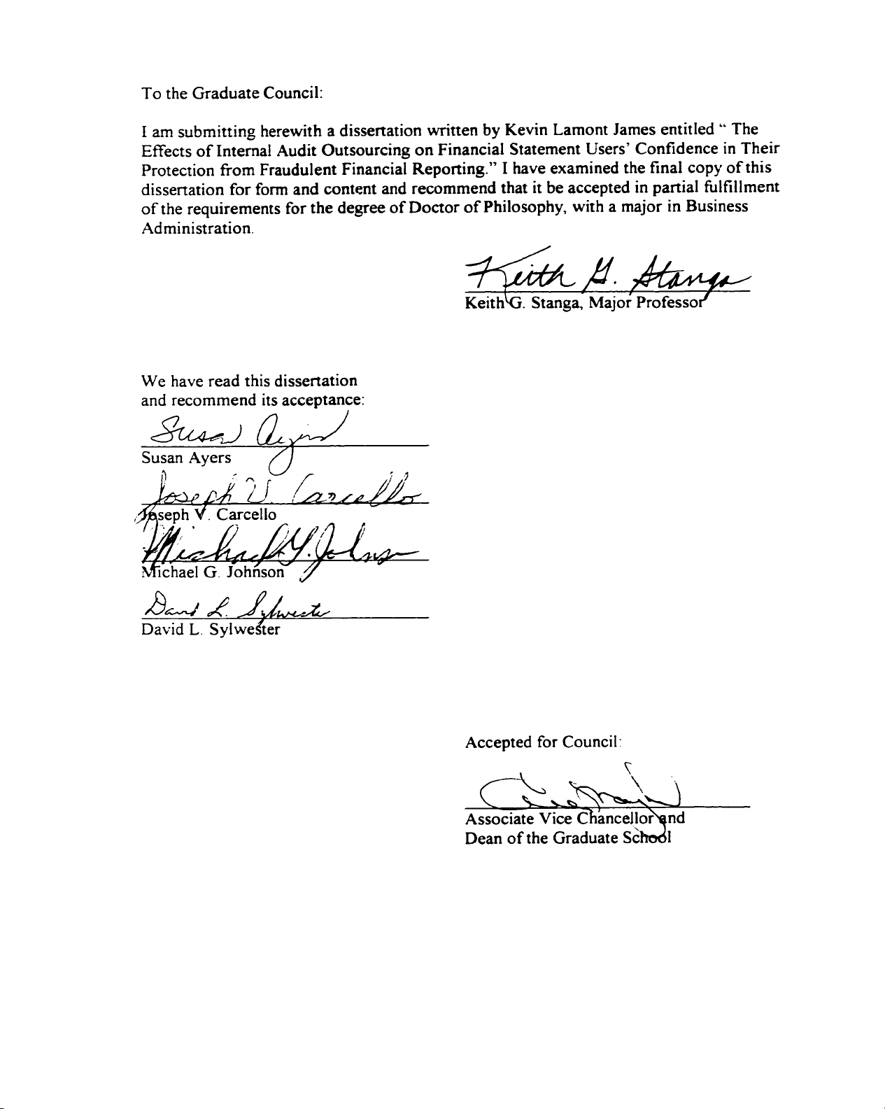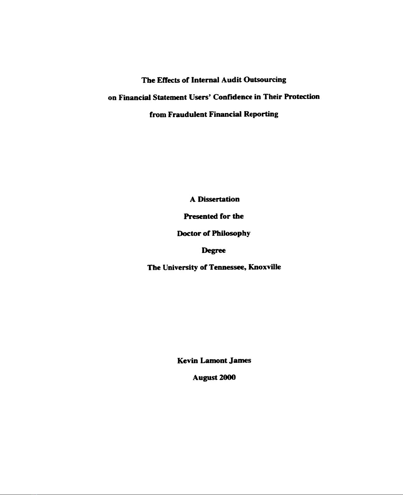 Research " The effect of Internal Audit Outsourcing on Financial Statement Users'Confidence in Their Protection From Fraudulent Financial Reporting "