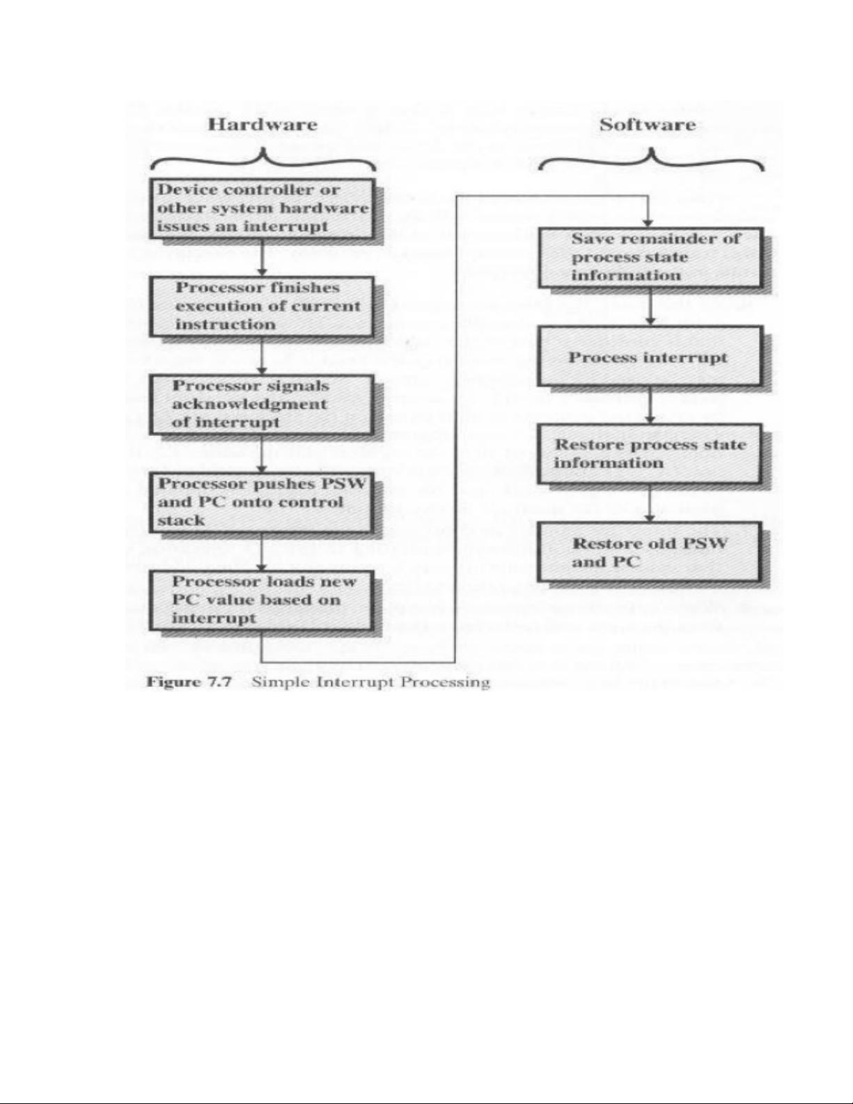 and in software. Figure 7.7 shows a typical sequence. When an I/O device completes an I/