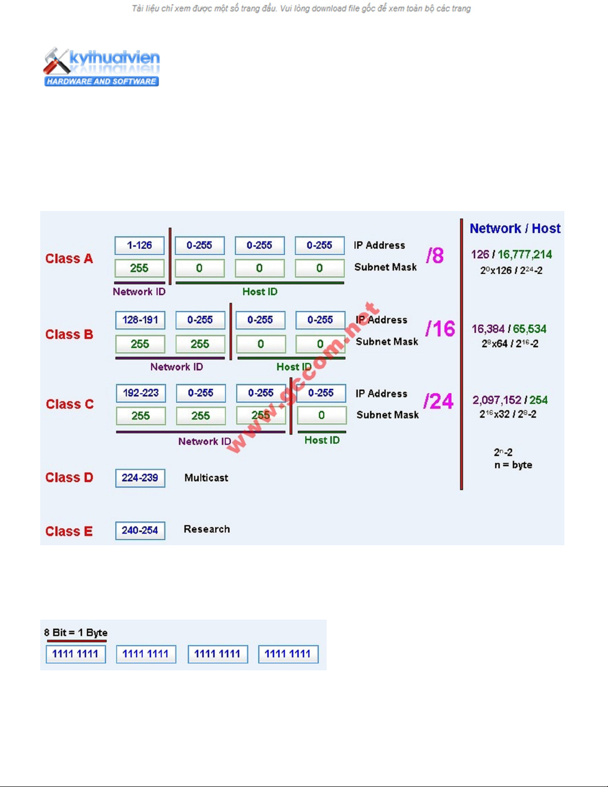 Network và số Host tương ứng với nó được qui định bởi Subnet Mask