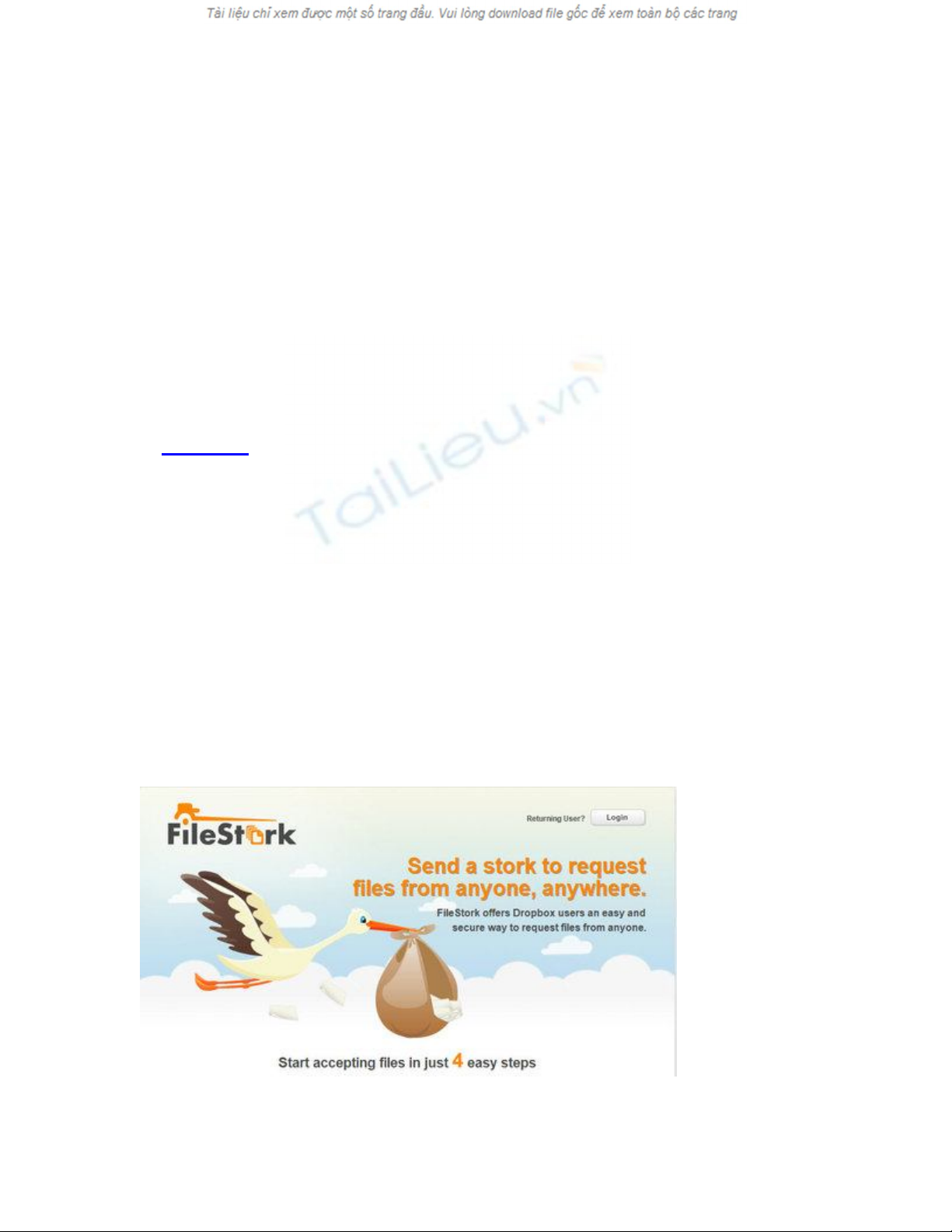 chỉ Dropbox của bạn. Đầu tiên bạn truy cập vào trang https://filestork.net/