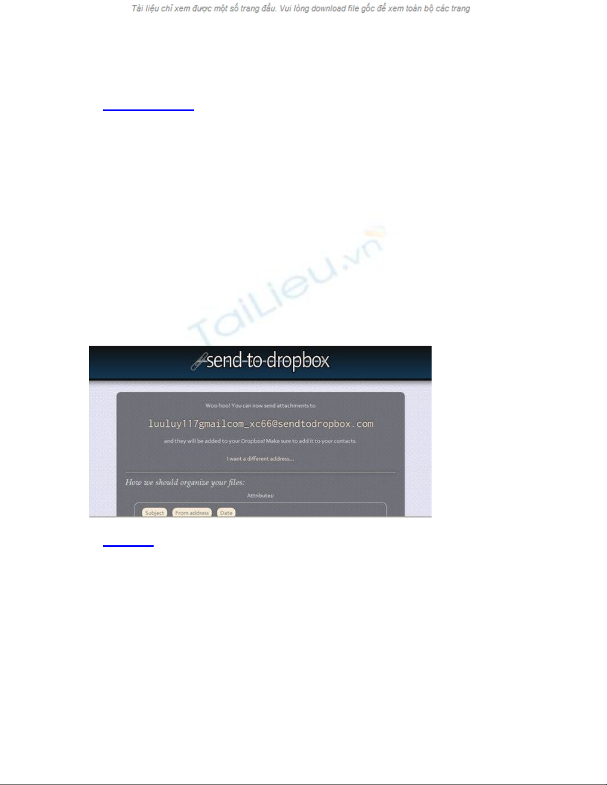 bạn sẽ thấy địa chỉ email miễn phí được Sendtodropbox cung cấp, ngoài ra