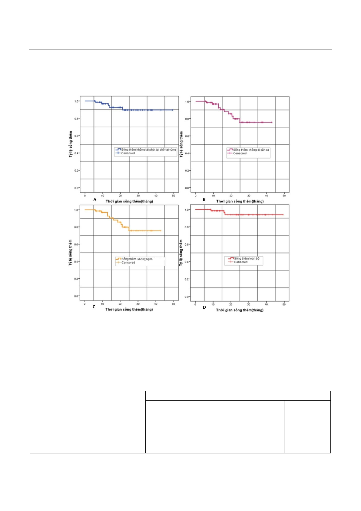 sống thêm không di căn xa (B), sống thêm không bệnh (C) và sống thêm toàn bộ (D)