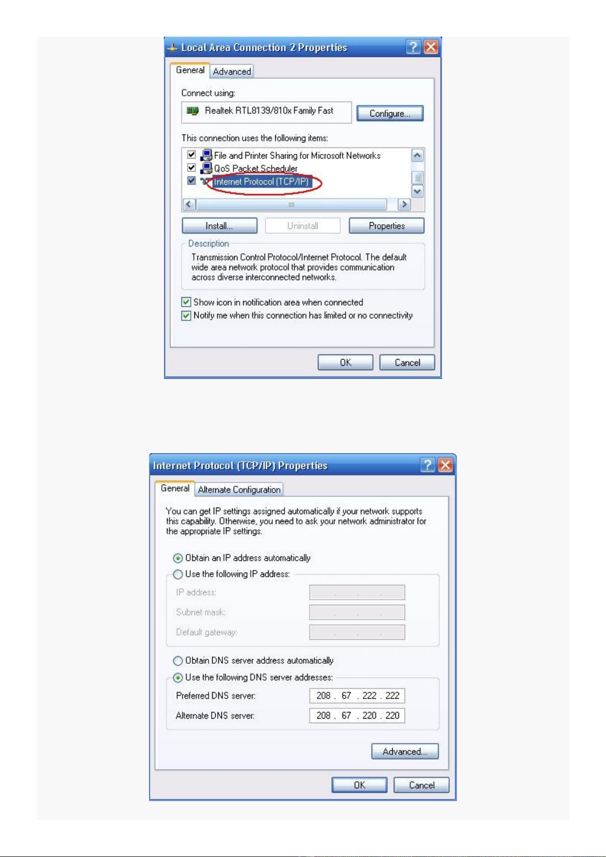 (208.67.222.222 , 208.67.220.220 ) nh hình 3 phía d i r i kích OK là hoàn t t.ư ướ ồ ấ