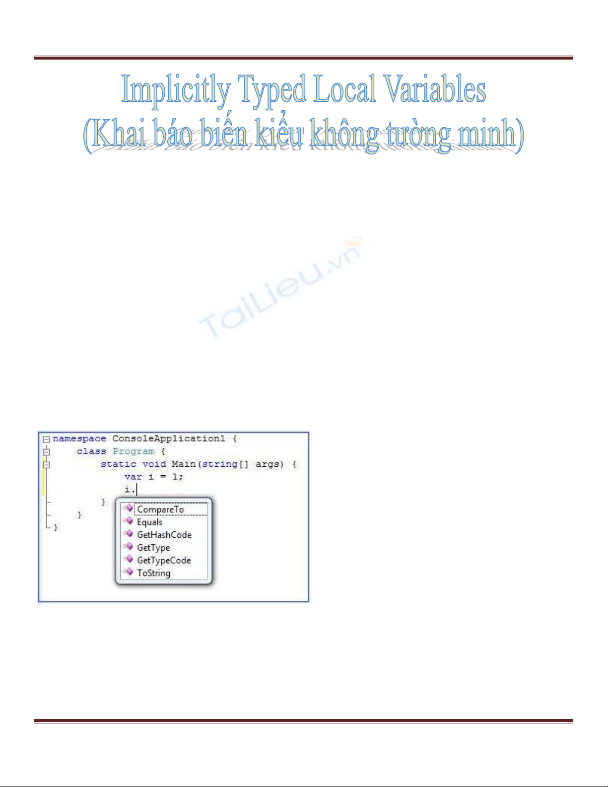 - Khai báo biến kiểu không tường minh (Implicitly Typed Local Variables) không phải là kiểu object hoặc
