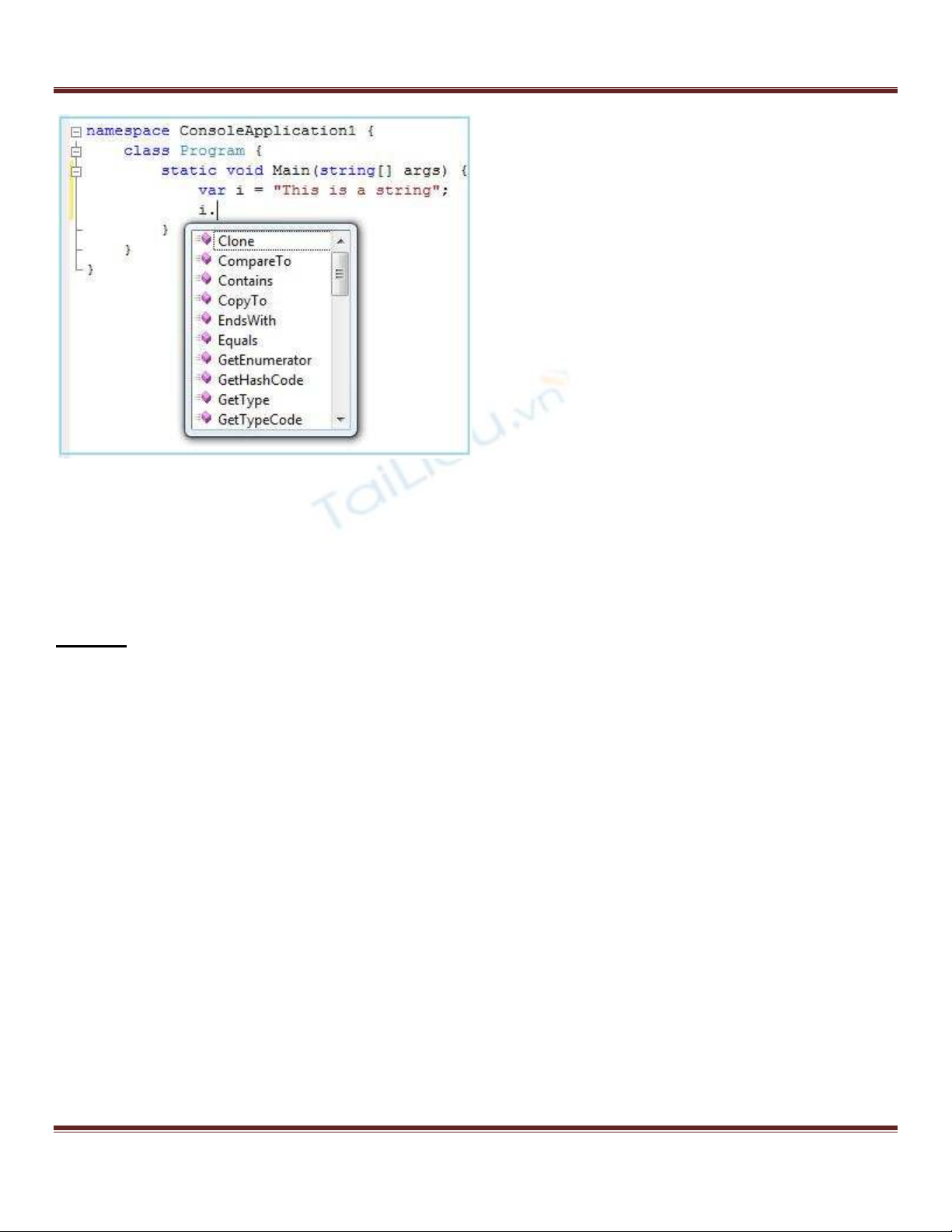 C# 3.0 đưa thêm 1 từ khoá mới gọi là “var“. Từ khoá var cho phép định nghĩa 1 biến mà không cần khai báo