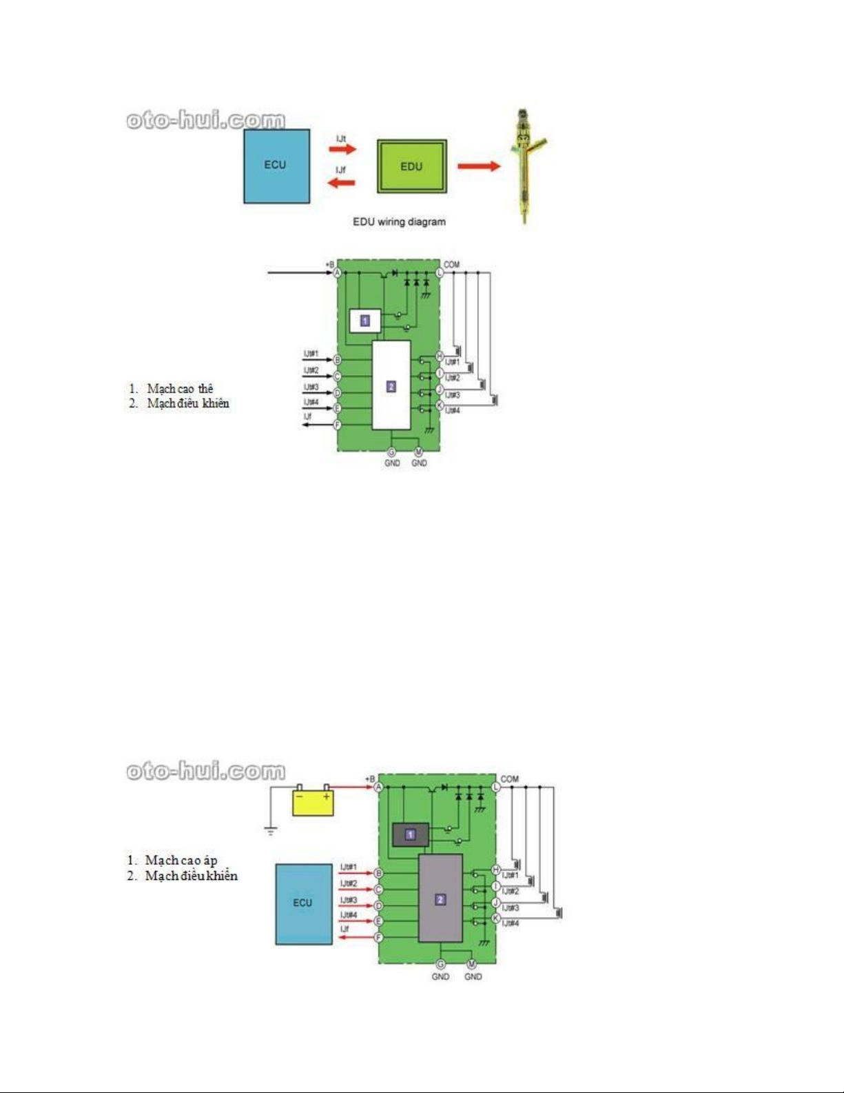 Khi nhận được những tín hiệu này, EDU truyền các tín hiệu đến các ống phun từ
