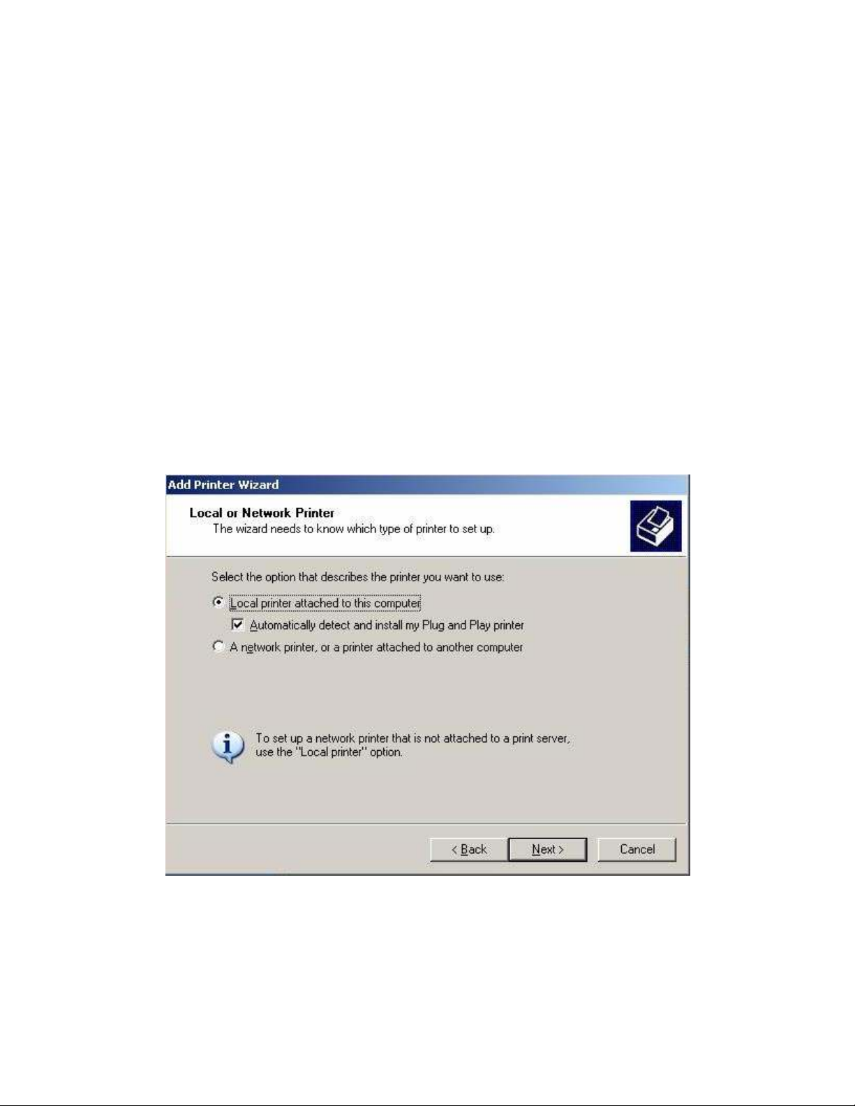 Hình B: Mặc định Add Printer Wizard kết nối đến một máy in đã được gắn cục