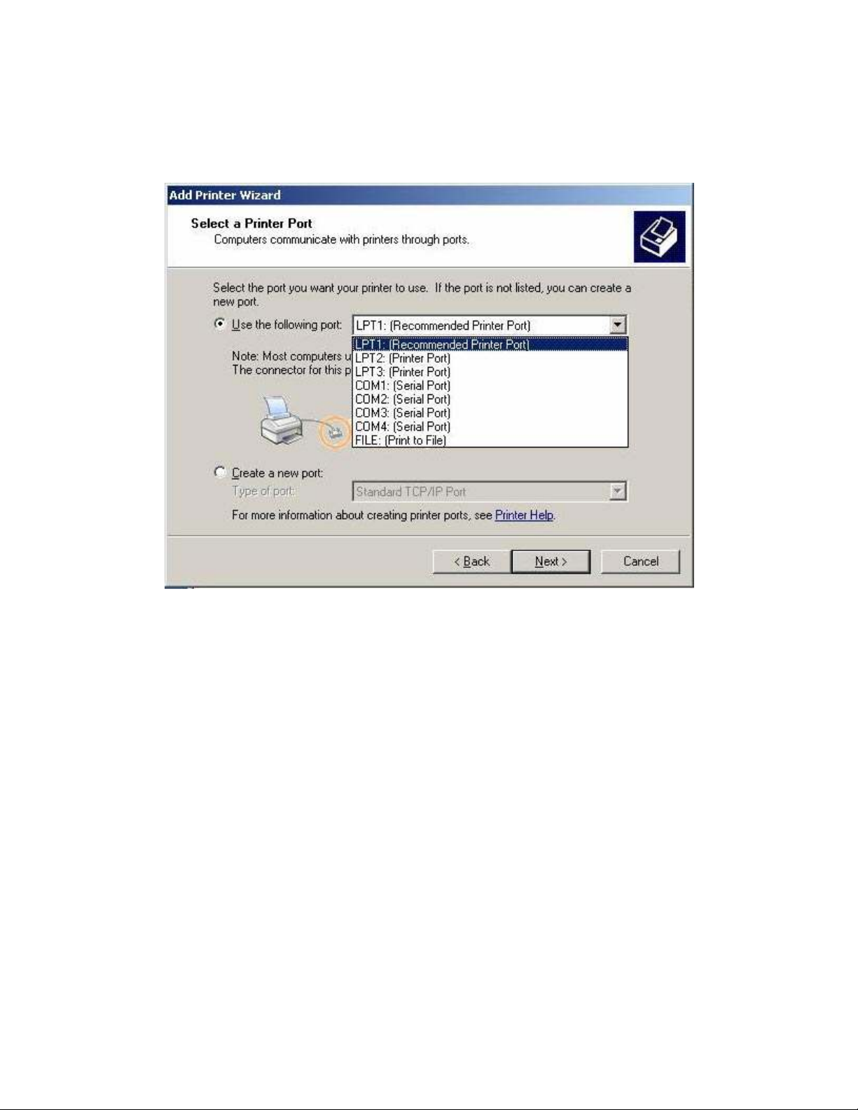 tùy chọn khác trong danh sách sổ xuống Use the Following Port cũng đề cập