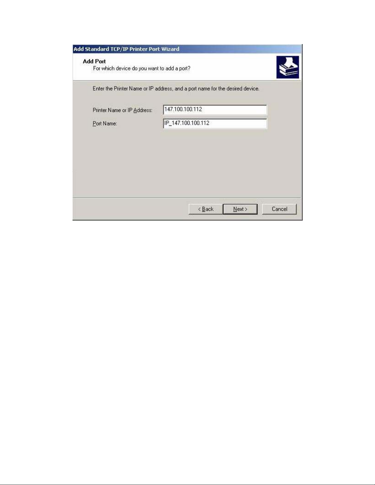 trước địa chỉ IP của máy in. Bạn có thể sử dụng tên cổng này hoặc tạo tên cổng