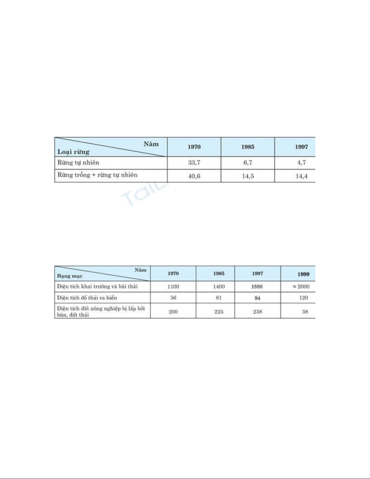 rừng tự nhiên từ 33,7% năm 1970 giảm xuống 6,7% (1985) và 4,7% (1997) (Bảng