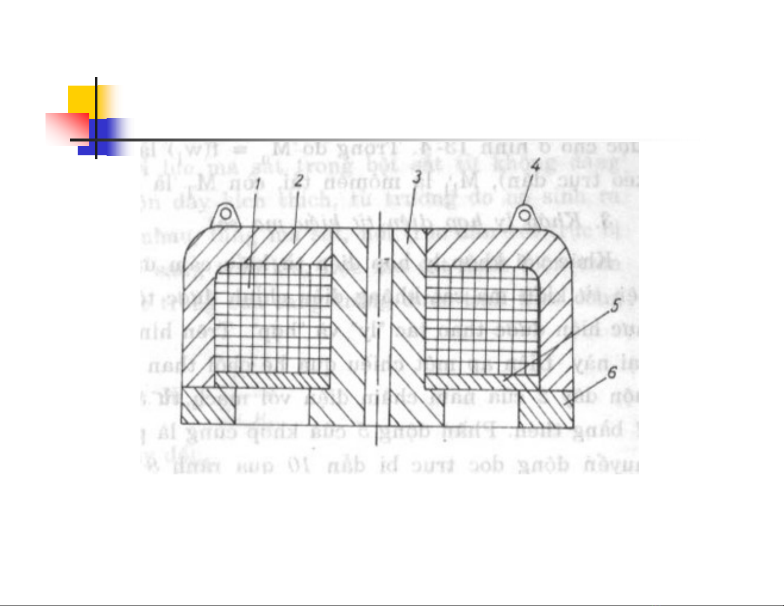 1. Cuộn dây, 2. Mạch từ, 3. Cực từgiữa,