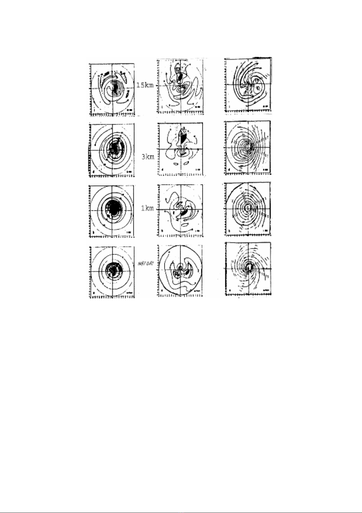 dòng trong bão ở các mực: mặt đất, 1km, 3km và 15km (Izawa,1964).