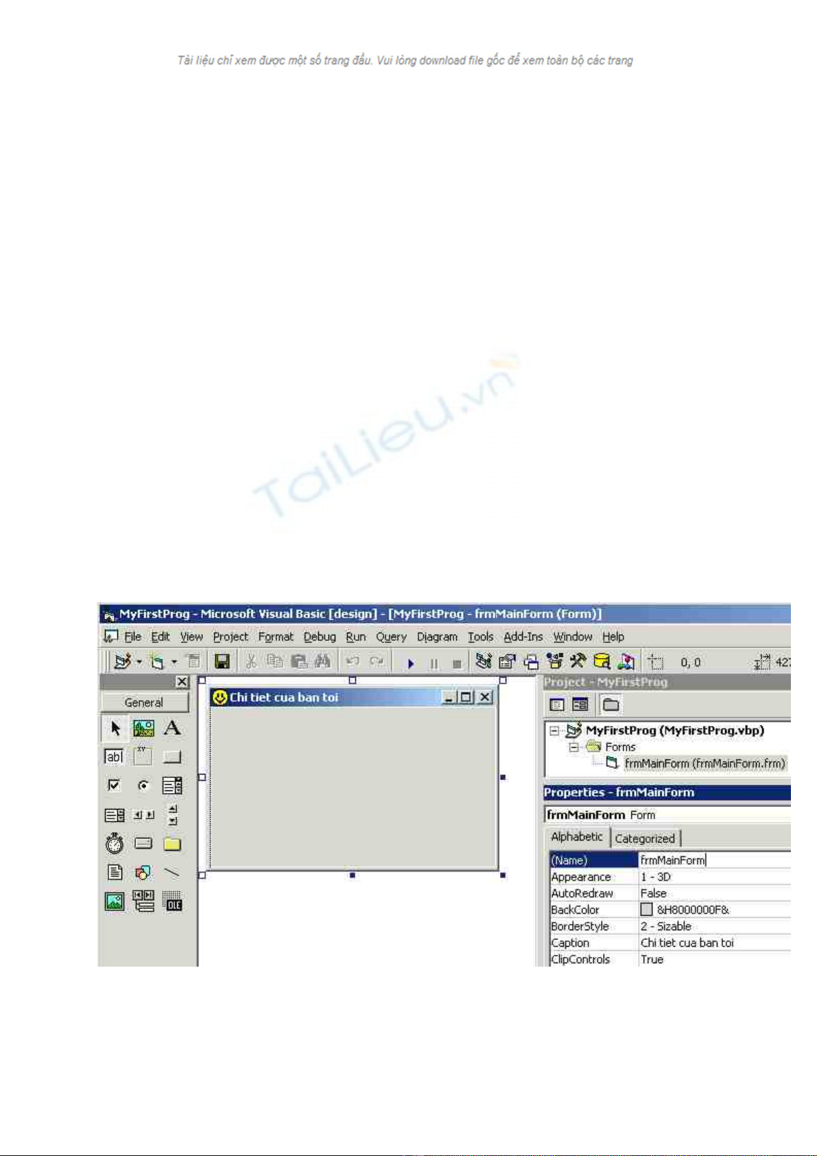 Environment - IDE) của MS VB6 và rất nóng ruột muốn viết những dòng mã đầu tiên