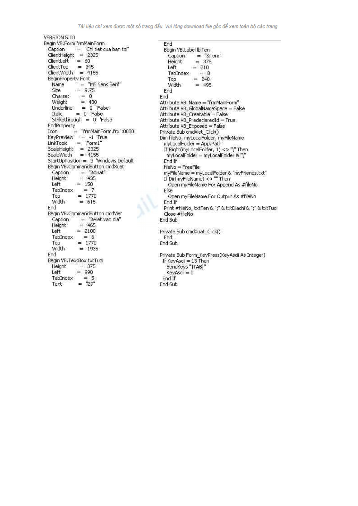 sửa cho các Control đều được ghi lại trong phần đầu nói trên. VB dựa vào phần diễn