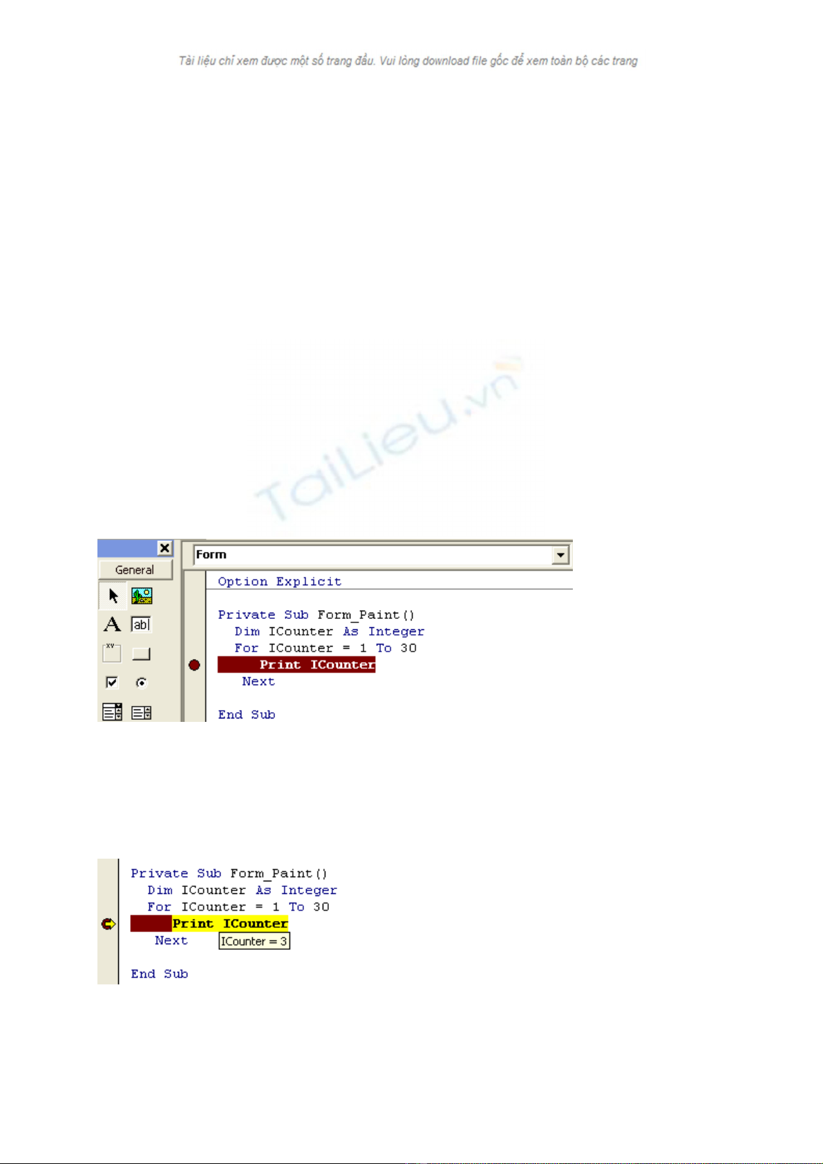 cho program bước từng bước. Trong dịp nầy ta sẽ xem xét trị số của