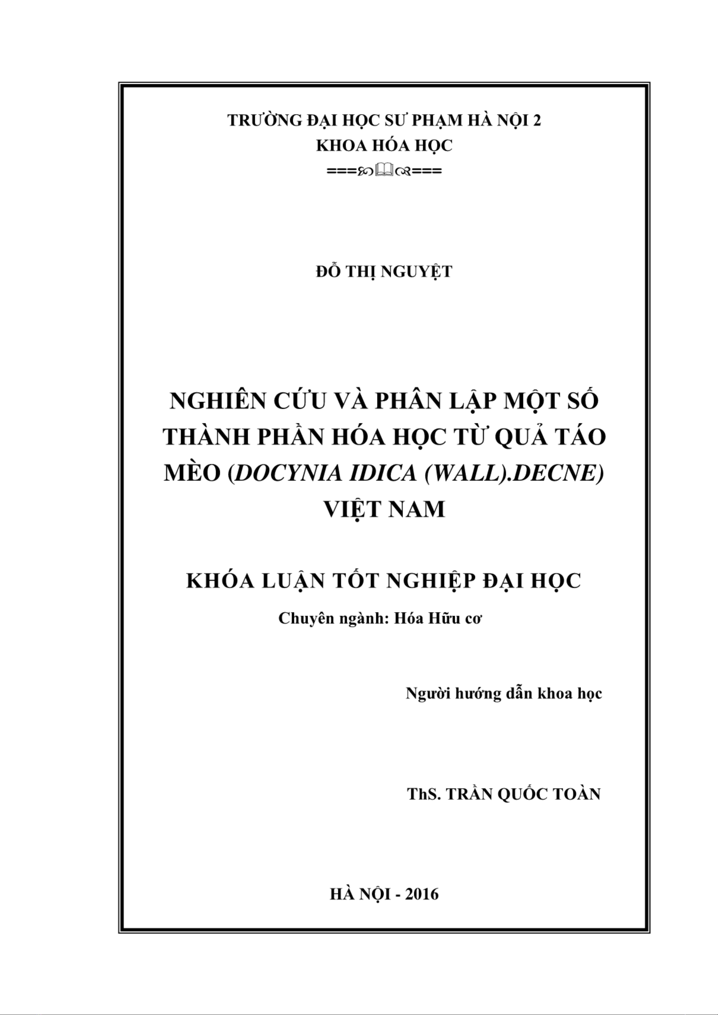 Khóa luận tốt nghiệp: Nghiên cứu và phân lập một số thành phần hóa học từ quả táo mèo (Docynia Indica (Wall.)Decne) Việt Nam