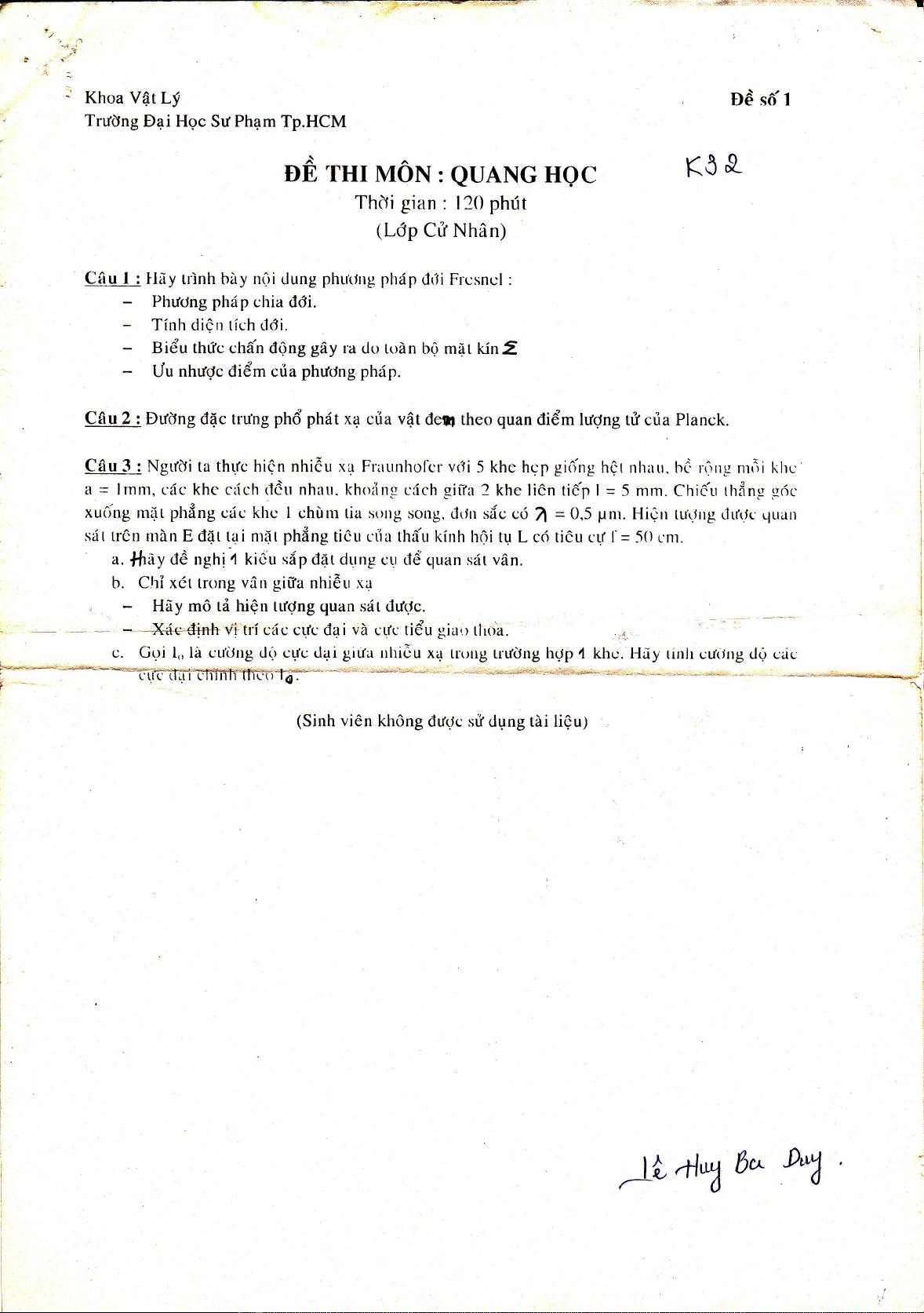 CAu 3 : Ngdili ta thtrc hiOn nhi6u xa Frlunhof'cr vrli -5 khe hcp gidng he I nhau. hi r0rrg nr6i khc